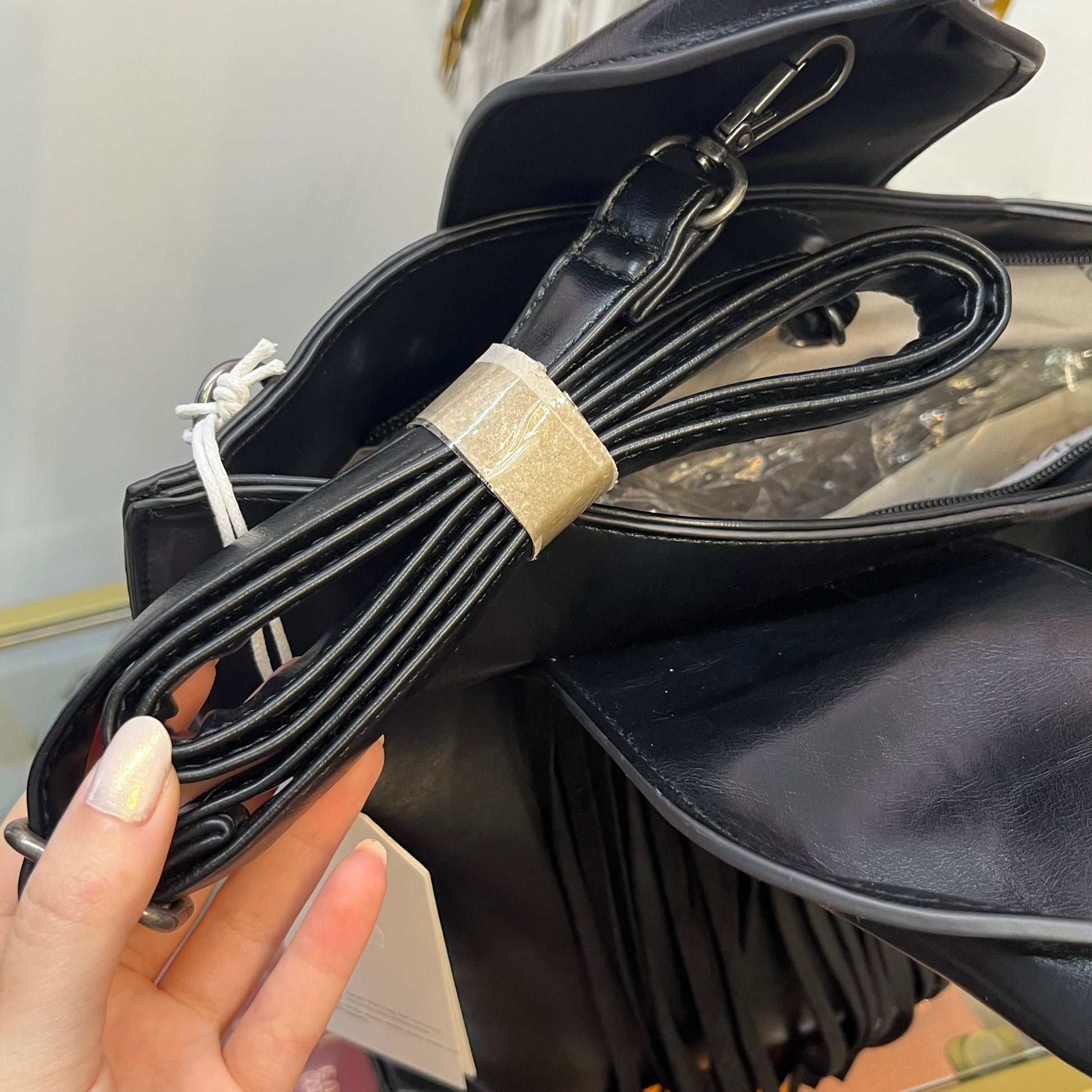La Borsa Kendall è il must-have per un look sofisticato e sostenibile. Realizzata in eco pelle di alta qualità, presenta una struttura ben progettata e un design unico con frange davanti. Con i suoi due manici e la tracolla, offre praticità e comodità. Non solo di classe, ma anche super capiente grazie alla sua forma rettangolare.