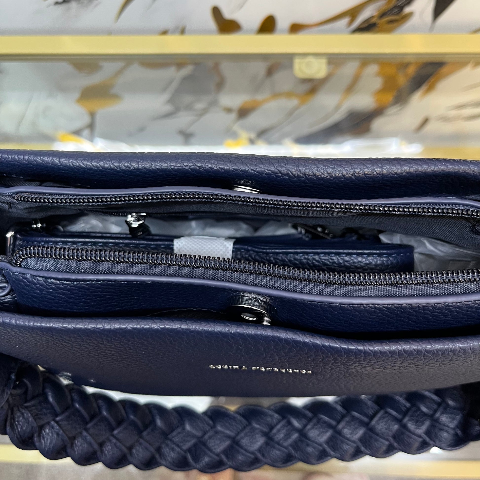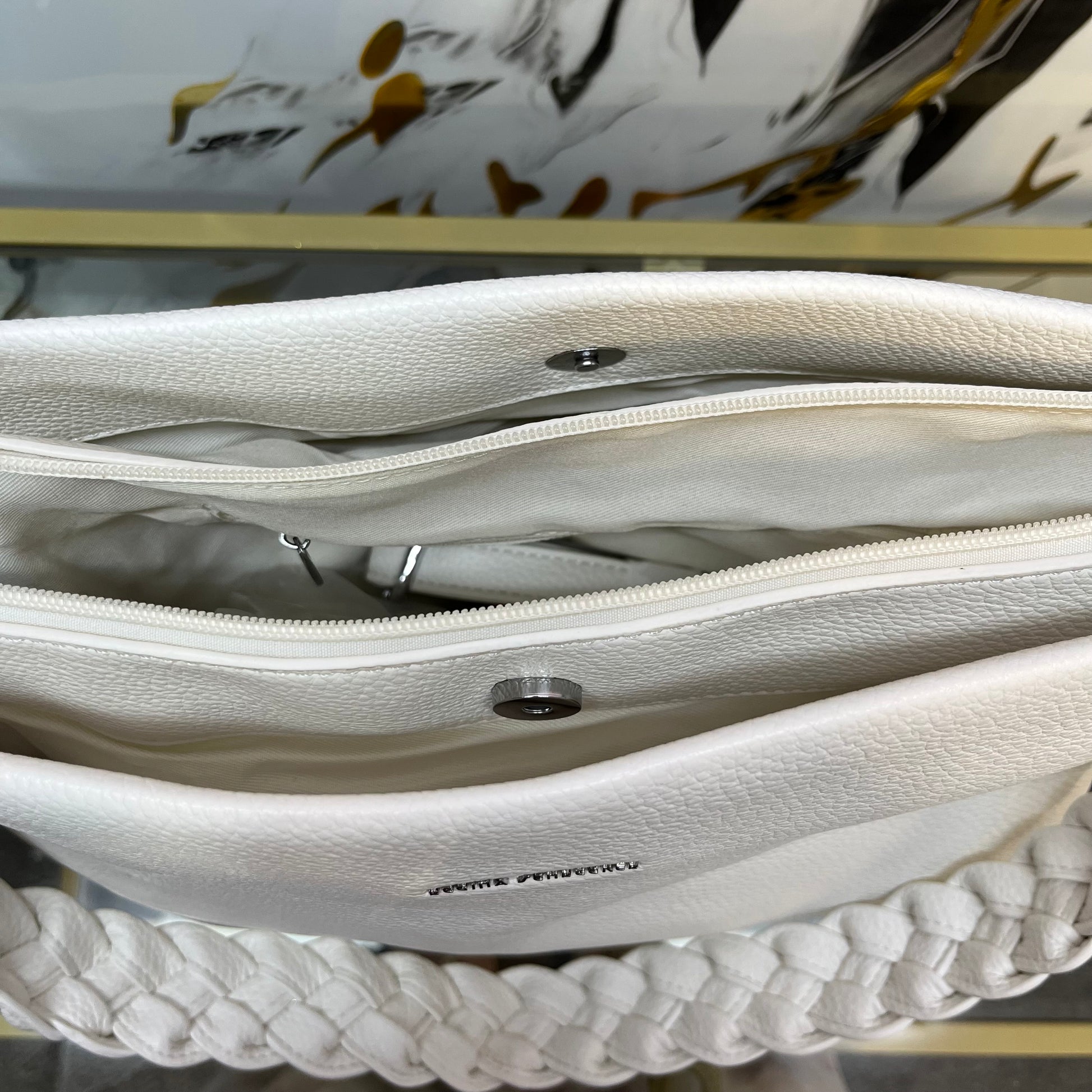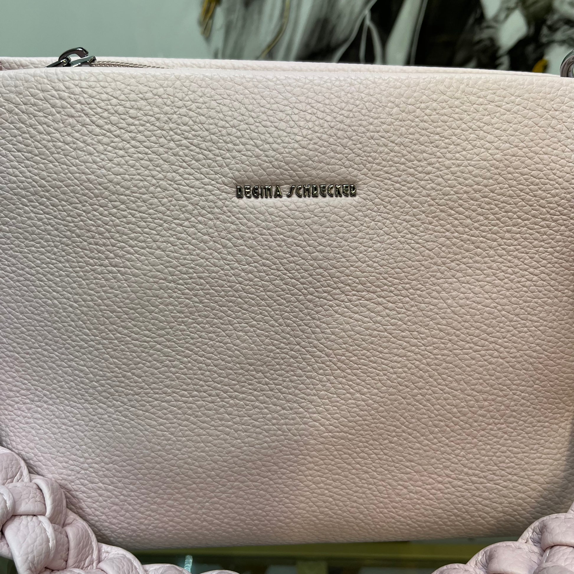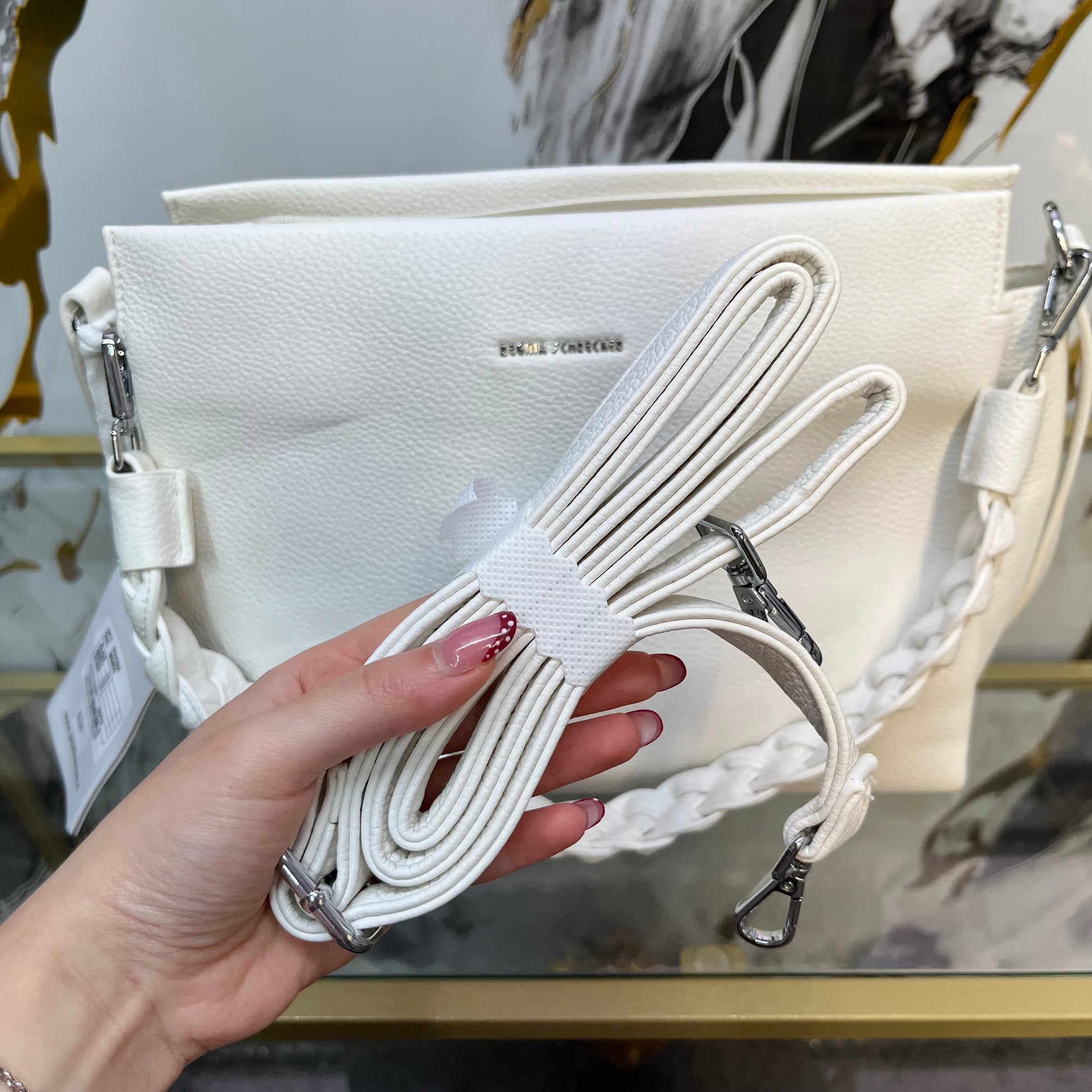 La Borsetta Regina è un accessorio in ecopelle, progettato con un elegante manico intrecciato. Dispone di tre scomparti, uno dei quali è dotato di zip per una maggiore sicurezza, mentre gli altri sono chiusi con clip magnetica. Versatile, può essere indossata a spalla o a tracolla, offrendo un'ampia capacità di contenimento.