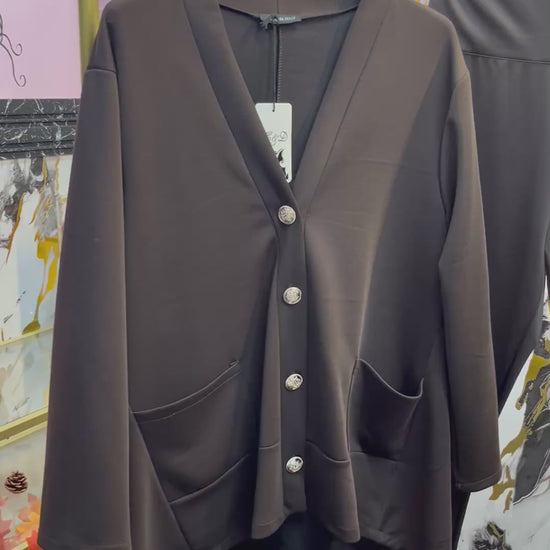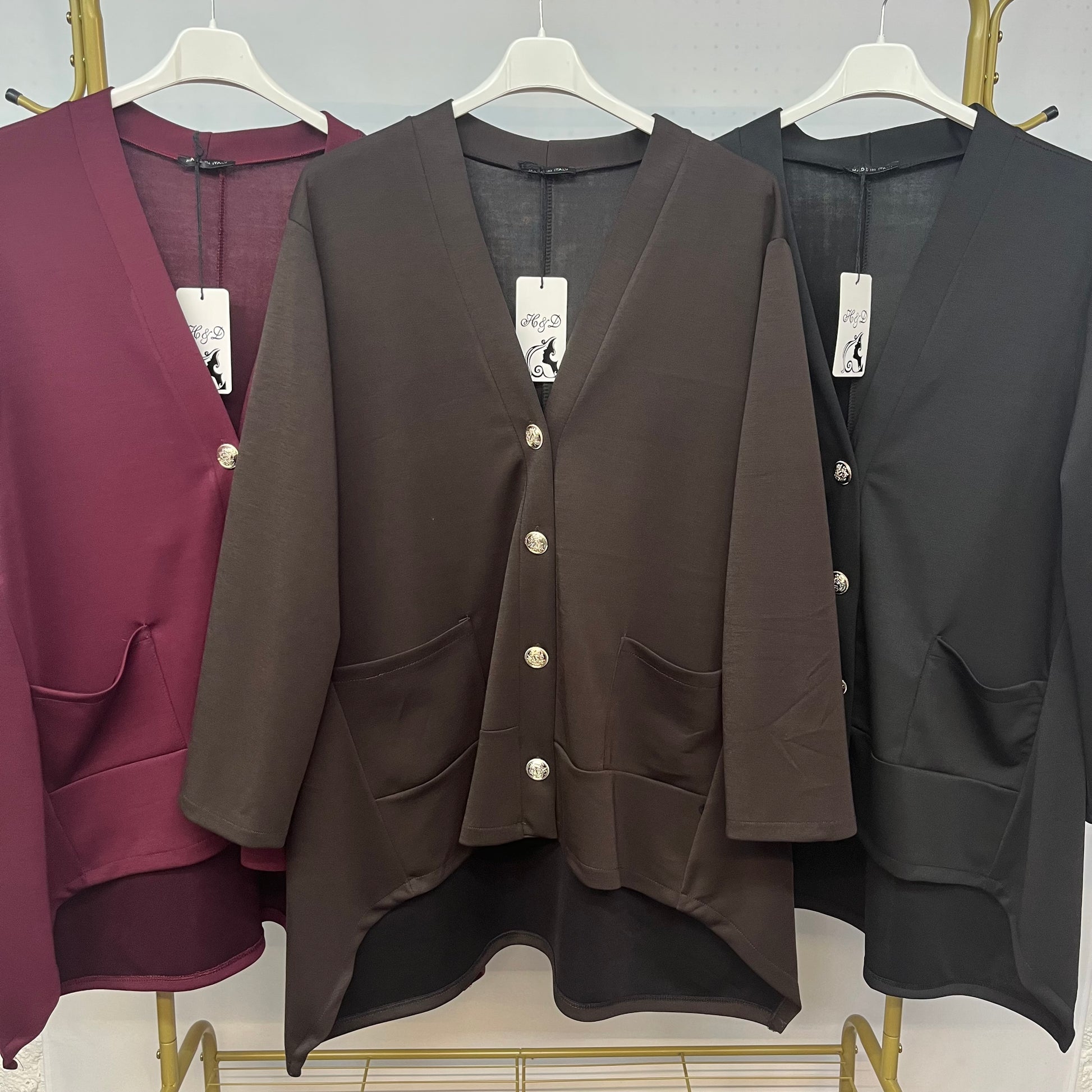 Cardigan Lindsey è un cardigan elegante e versatile con un moderno scollo a V e bottoncini dorati per una chiusura raffinata. Con le sue due tasche davanti, è sia funzionale che alla moda. Grazie alla sua lunghezza asimmetrica, crea un look unico e accattivante.