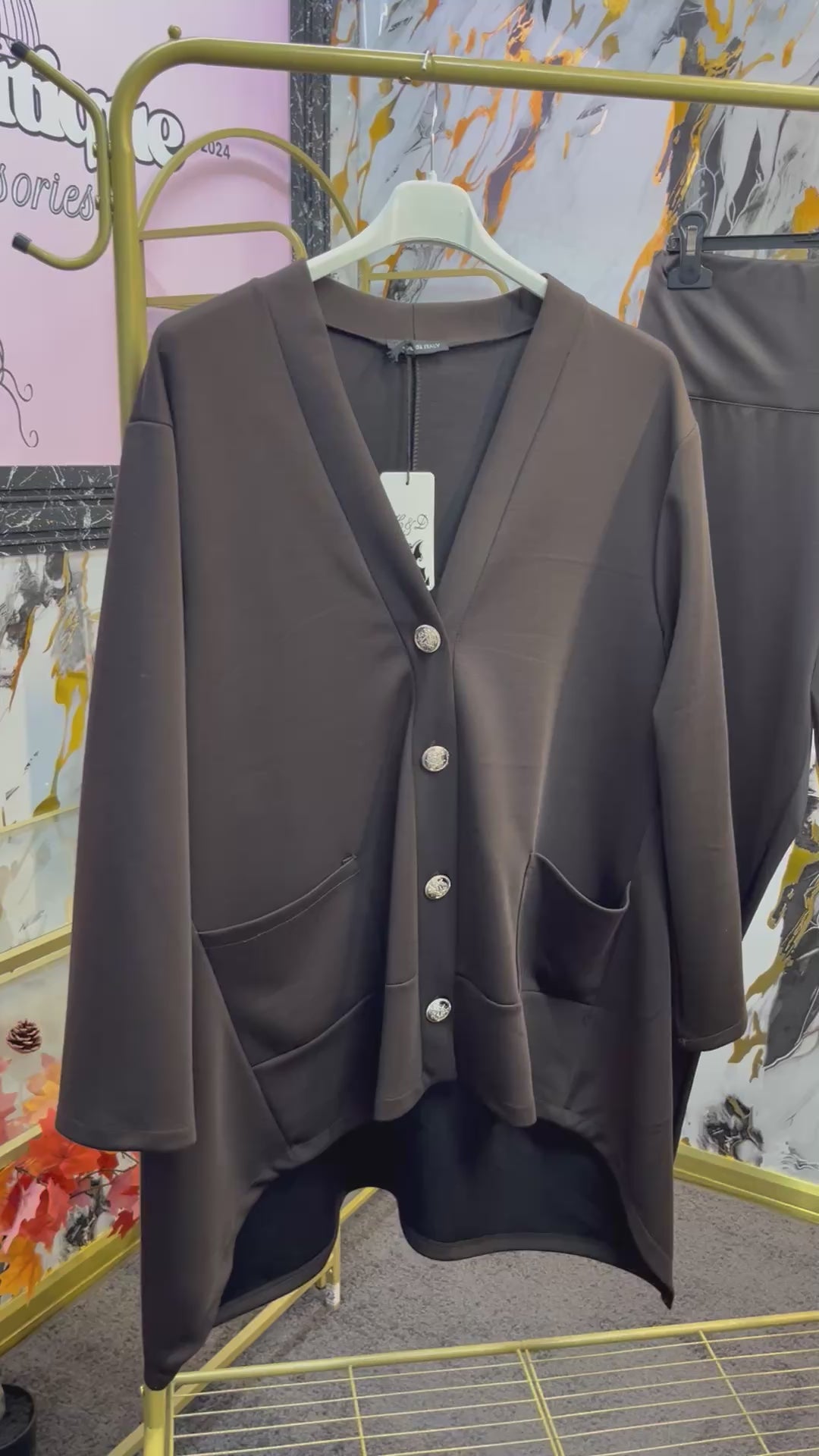 Realizzato per adattarsi a una vasta gamma di taglie, il cardigan Lindsey è perfetto per ogni occasione. La circonferenza di 120cm si adatta perfettamente al tuo corpo, estendendosi a 140cm per una vestibilità comoda e versatile. Lunghezza di 72cm davanti e 90cm dietro per un look moderno e adatto a qualsiasi figura.