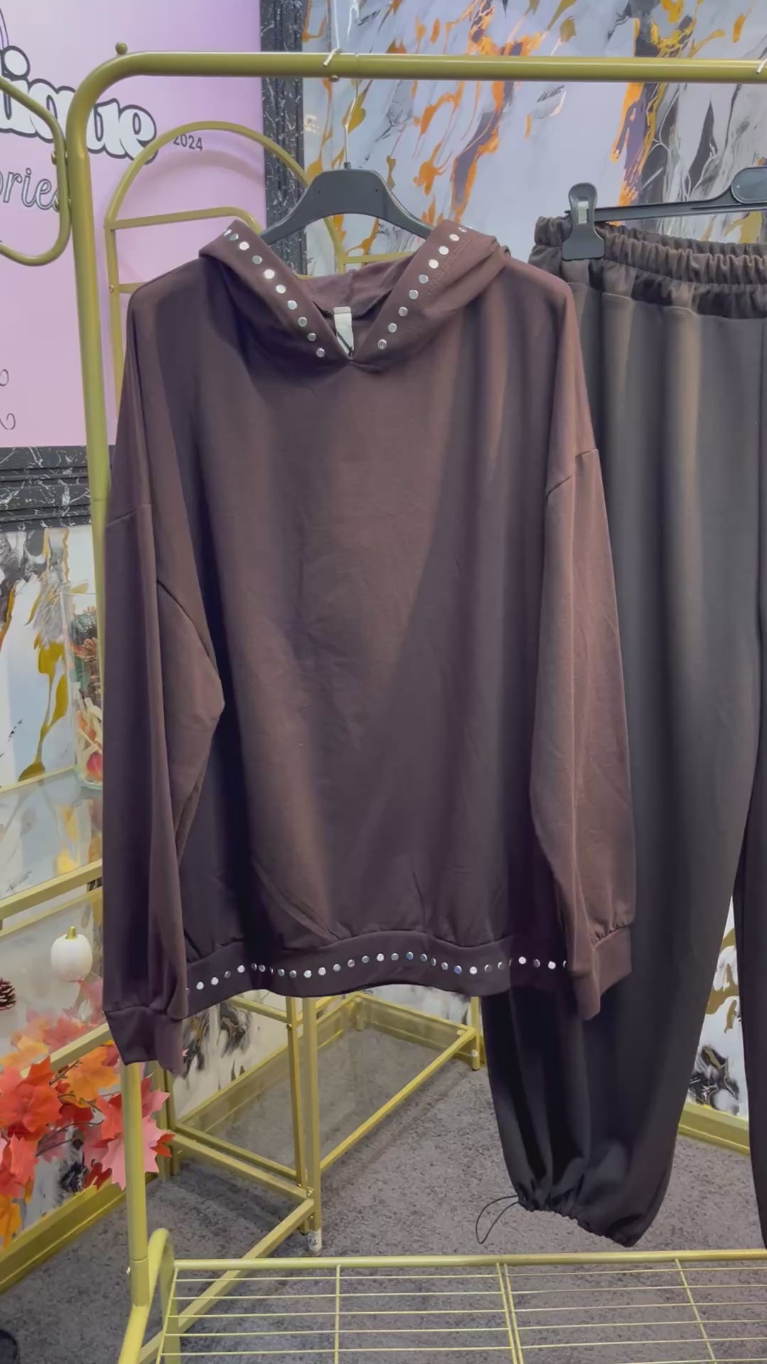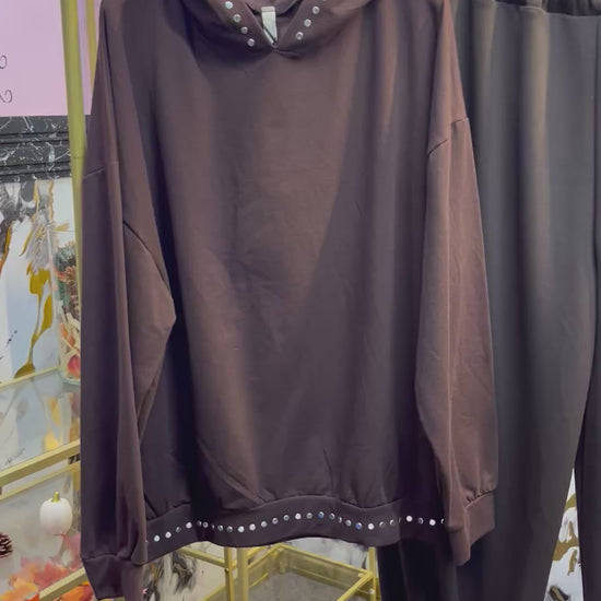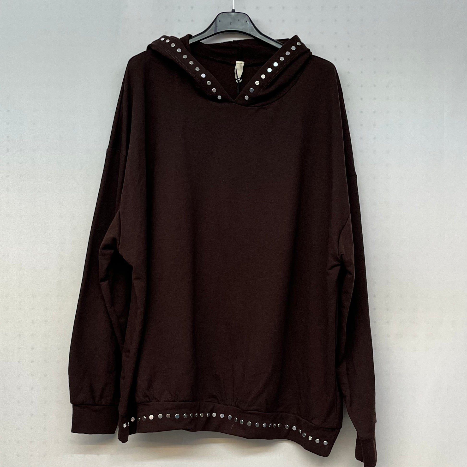 Questa felpa stile hoodie è la scelta perfetta per l'outfit di ogni giorno. Con le borchiette argentate sul cappuccio e sul bordo, otterrai un look chic e alla moda. Ideale per un'occasione casual o per una giornata in città. Confortevole e alla moda al 100%.