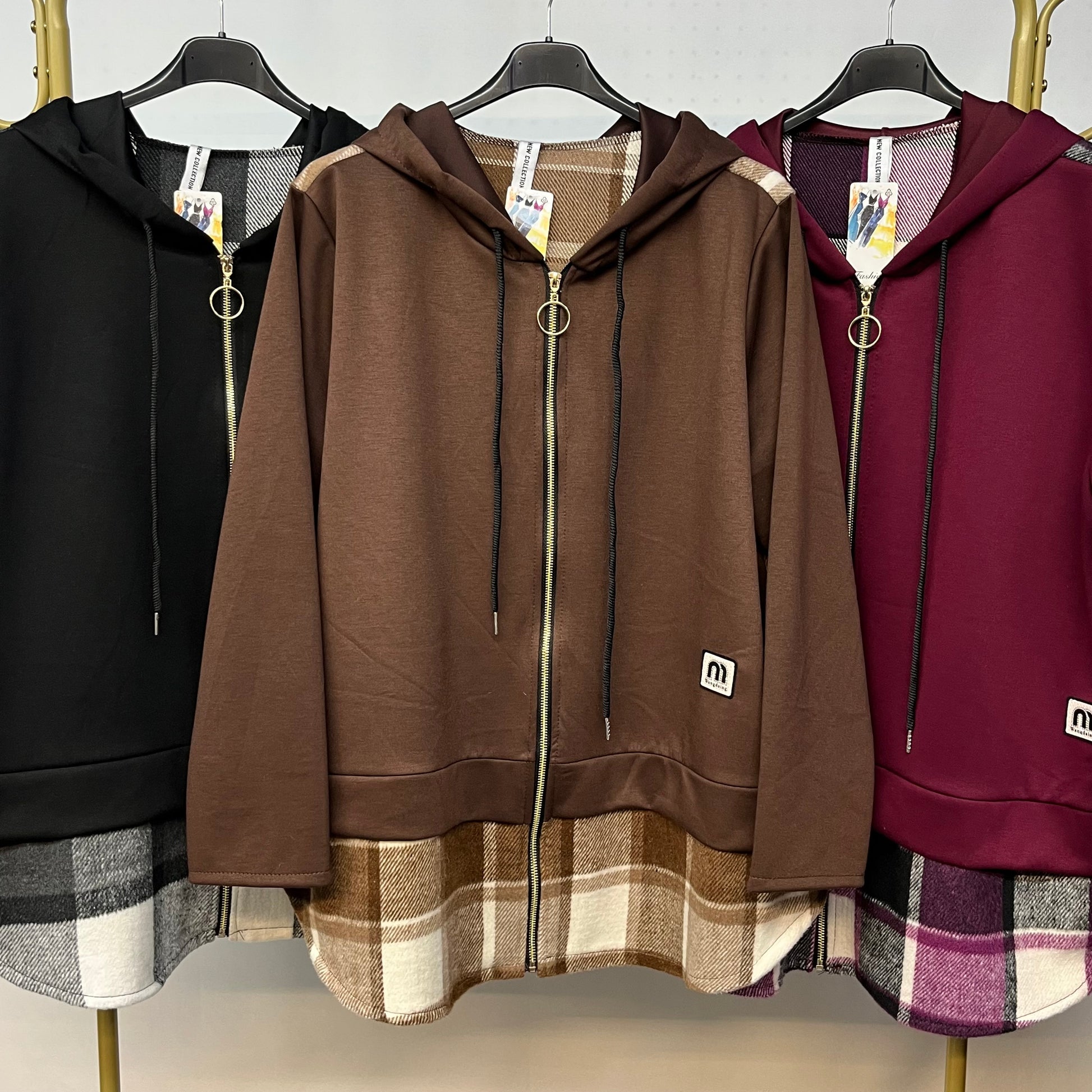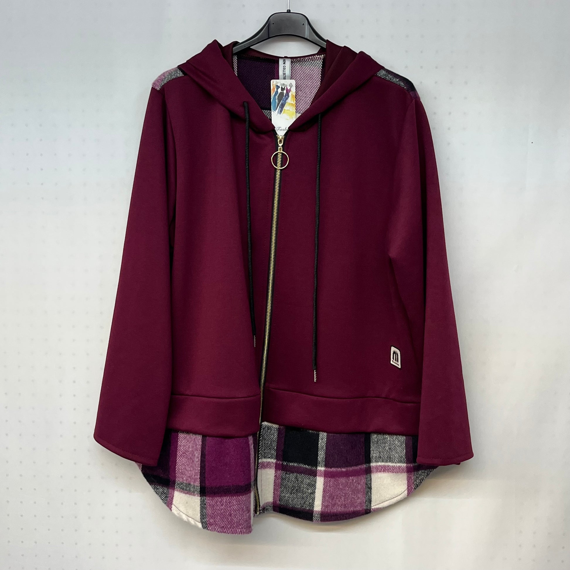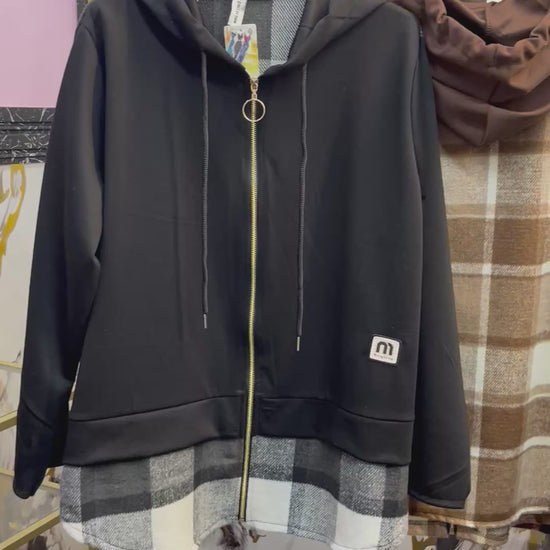 La Felpa Hannah è un must-have per gli amanti dello stile casual e sportivo. Realizzata con cappuccio e zip per una chiusura comoda e pratica, presenta anche laccetti regolabili per il cappuccio. Il dettaglio di finta camicia scozzese la rende unica e originale. Comoda, funzionale e di tendenza, questa felpa è perfetta per un look casual ma sempre curato.