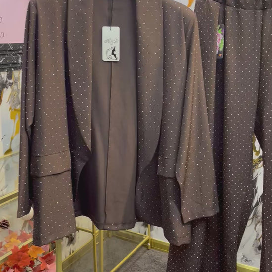 La Giacca Glitter è perfetta per dare un tocco di luce e stile ai tuoi outfit business casual. Realizzata in tessuto ricoperto di brillantini con spalle foderate, rimane aperta senza bottoni. Un must-have per un look elegante e sofisticato.