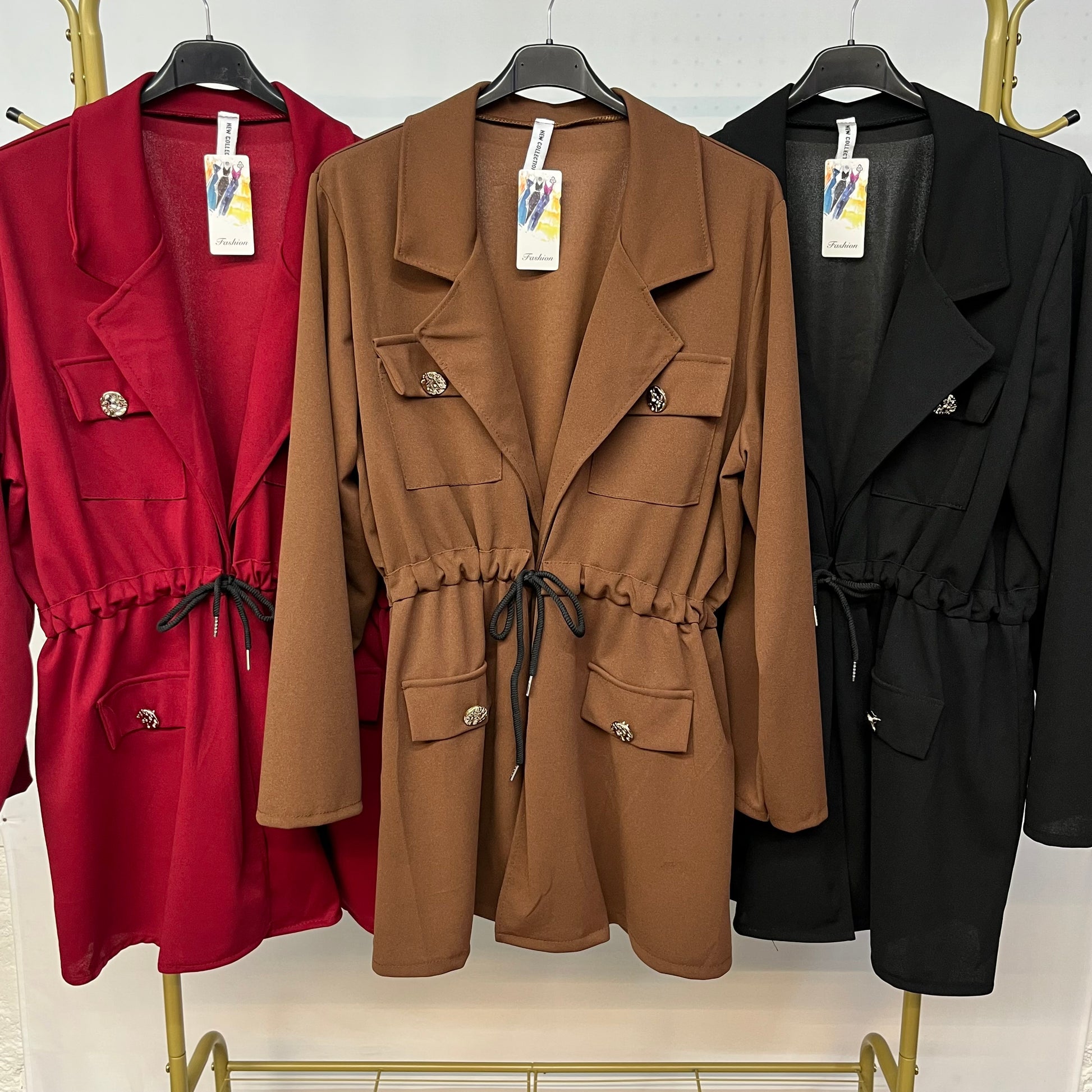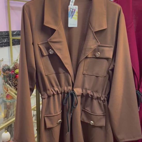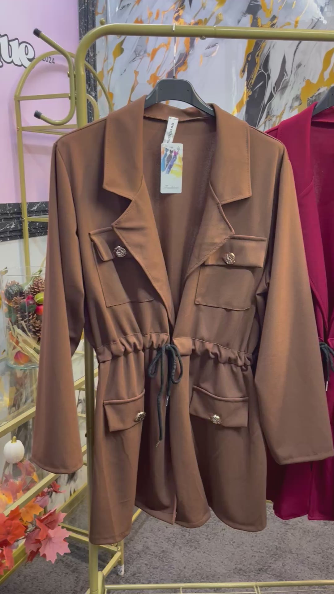 Realizzata in Italia, la Giacca London è un capo di abbigliamento particolare e di alta qualità. Il laccetto regolabile in vita permette di accentuare la silhouette, mentre i taschini con bottoncini dorati aggiungono un tocco di eleganza. Per un look raffinato e unico.