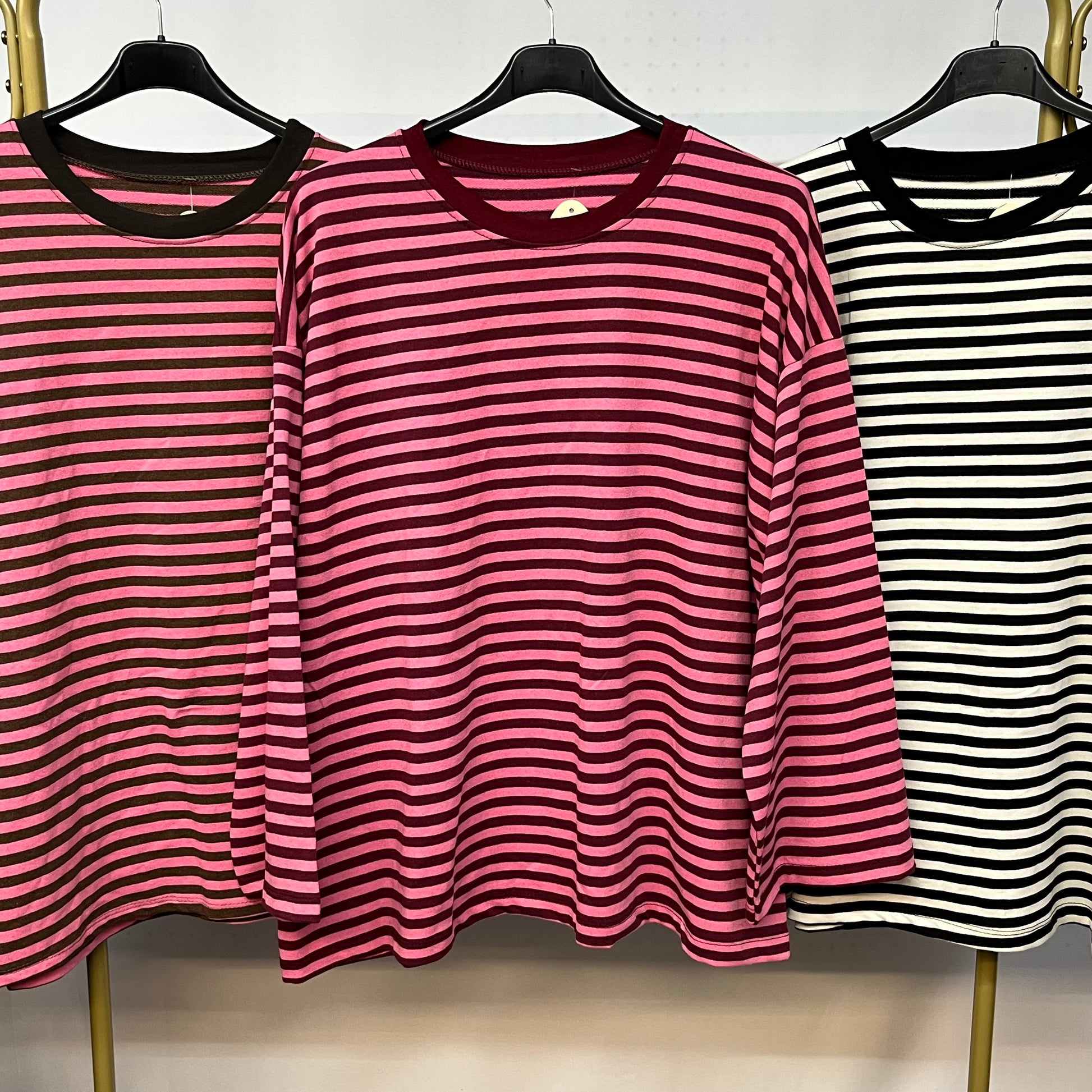 Questa maglietta a maniche lunghe Amélie è realizzata in cotone a righe per uno stile oversize. Con il suo design trendy e virale, sarai alla moda e pronta per qualsiasi occasione.