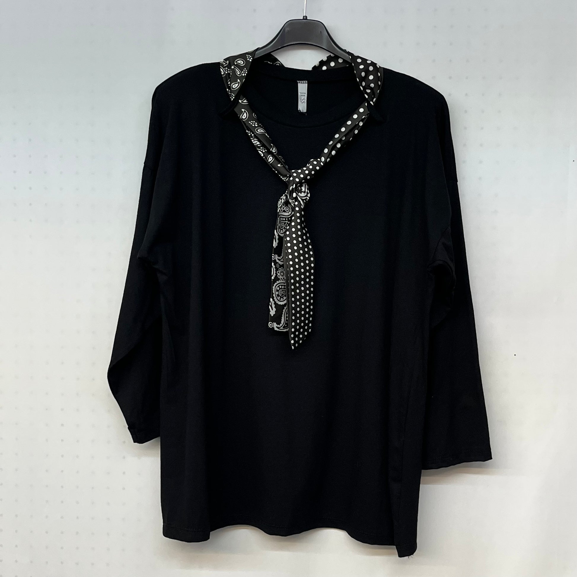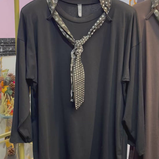 In questa elegante maglietta di cotone a maniche lunghe con girocollo, il foulard intorno al collo porta un tocco di stile unico. La morbidezza del cotone e il design versatile rendono questa maglia ideale per ogni occasione, offrendo un 55% di eleganza e un 45% di comfort.