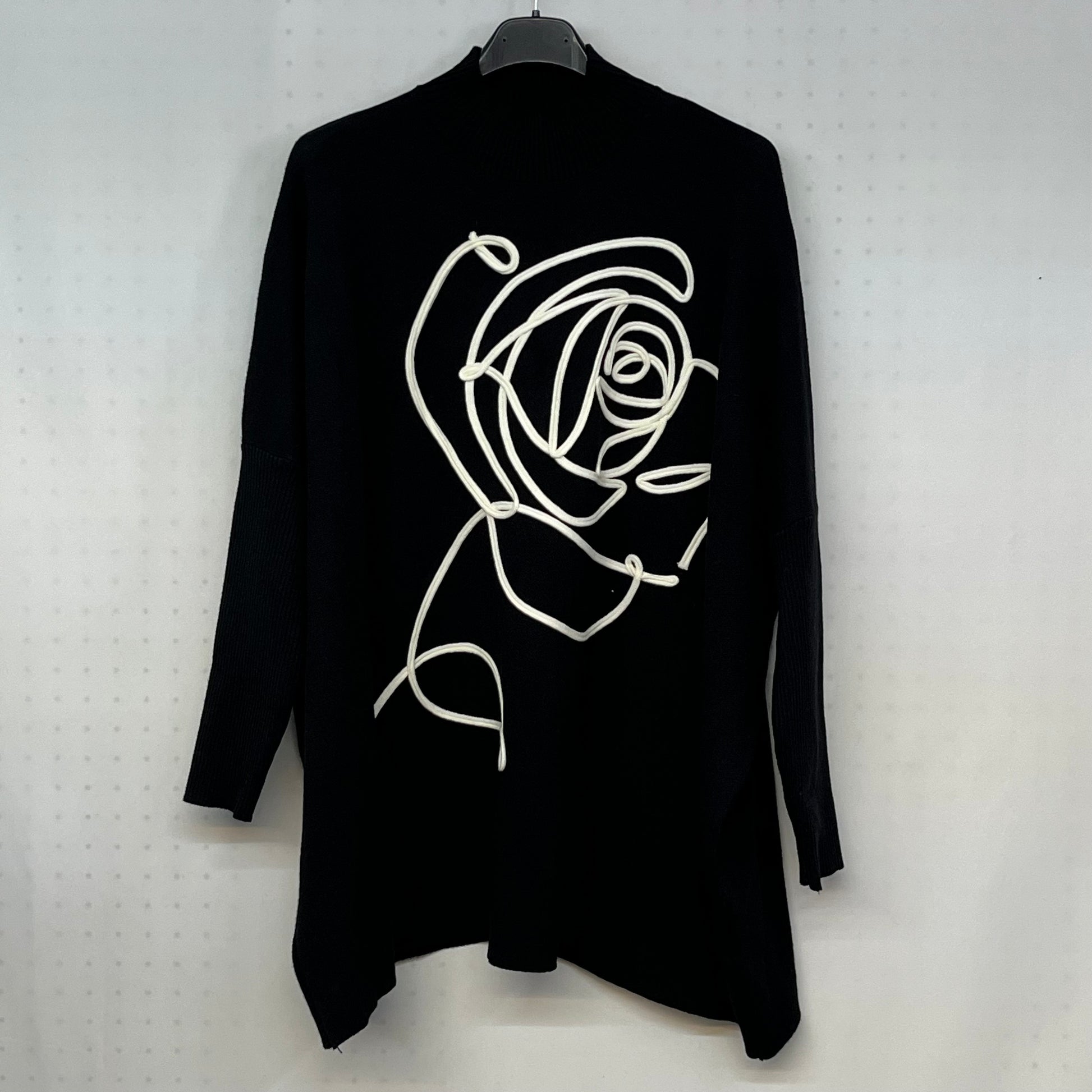 Questo Maglioncino Rose, realizzato in lanetta rasata, presenta un elegante collo a lupetto. Disponibile in due varianti, è arricchito da un bellissimo ricamo floreale di una rosa che dona un tocco di classe e femminilità. Rendi il tuo guardaroba unico con questo maglioncino di alta qualità.