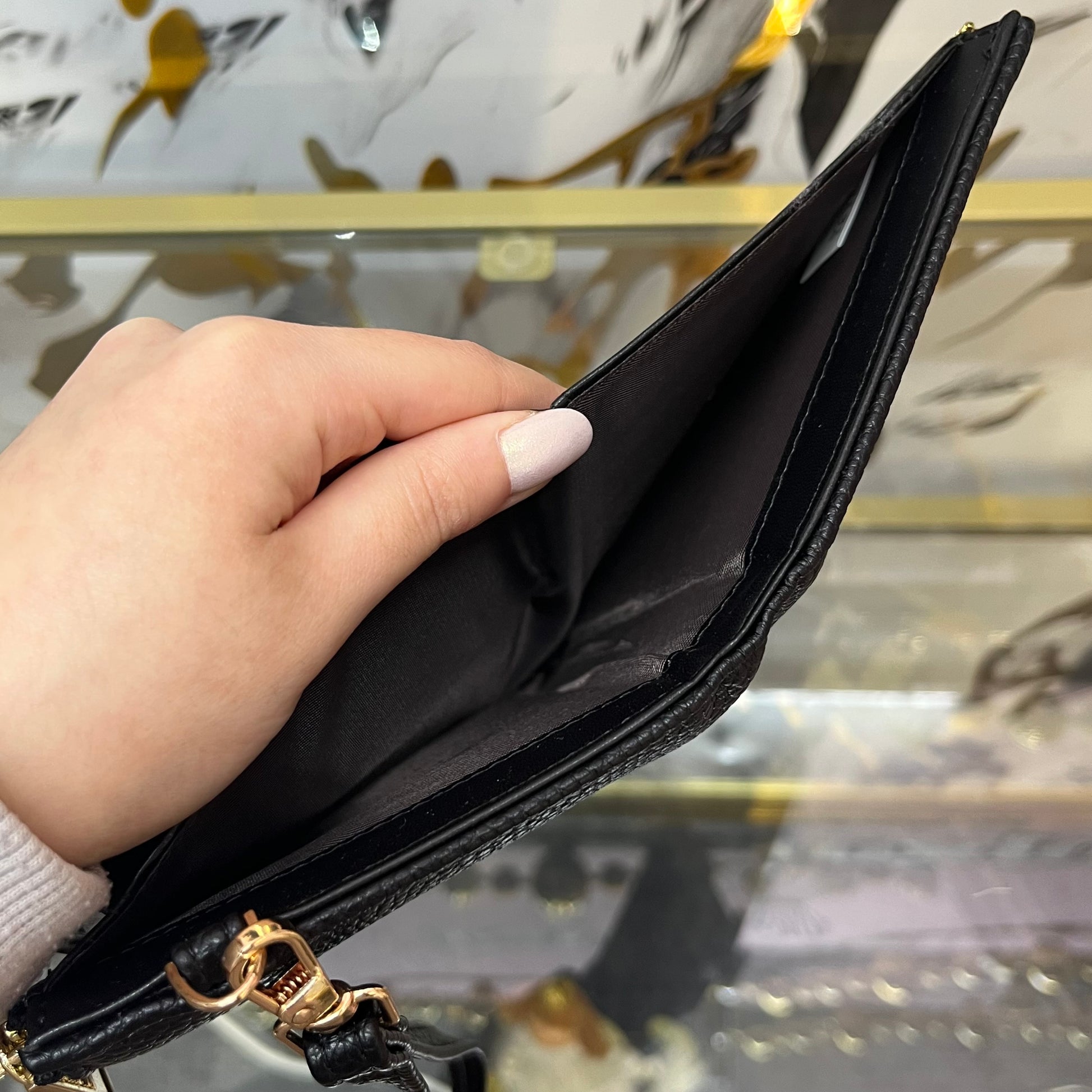 Il Portafoglio Ava è il compagno perfetto per le tue giornate. Con una pratica chiusura a clip e uno stile elegante da clutch, dispone di due scomparti con zip per le monete, uno per i contanti e ampio spazio per le carte. Non dovrete più preoccuparvi di dimenticare nulla a casa grazie a questo portafoglio versatile e chic.