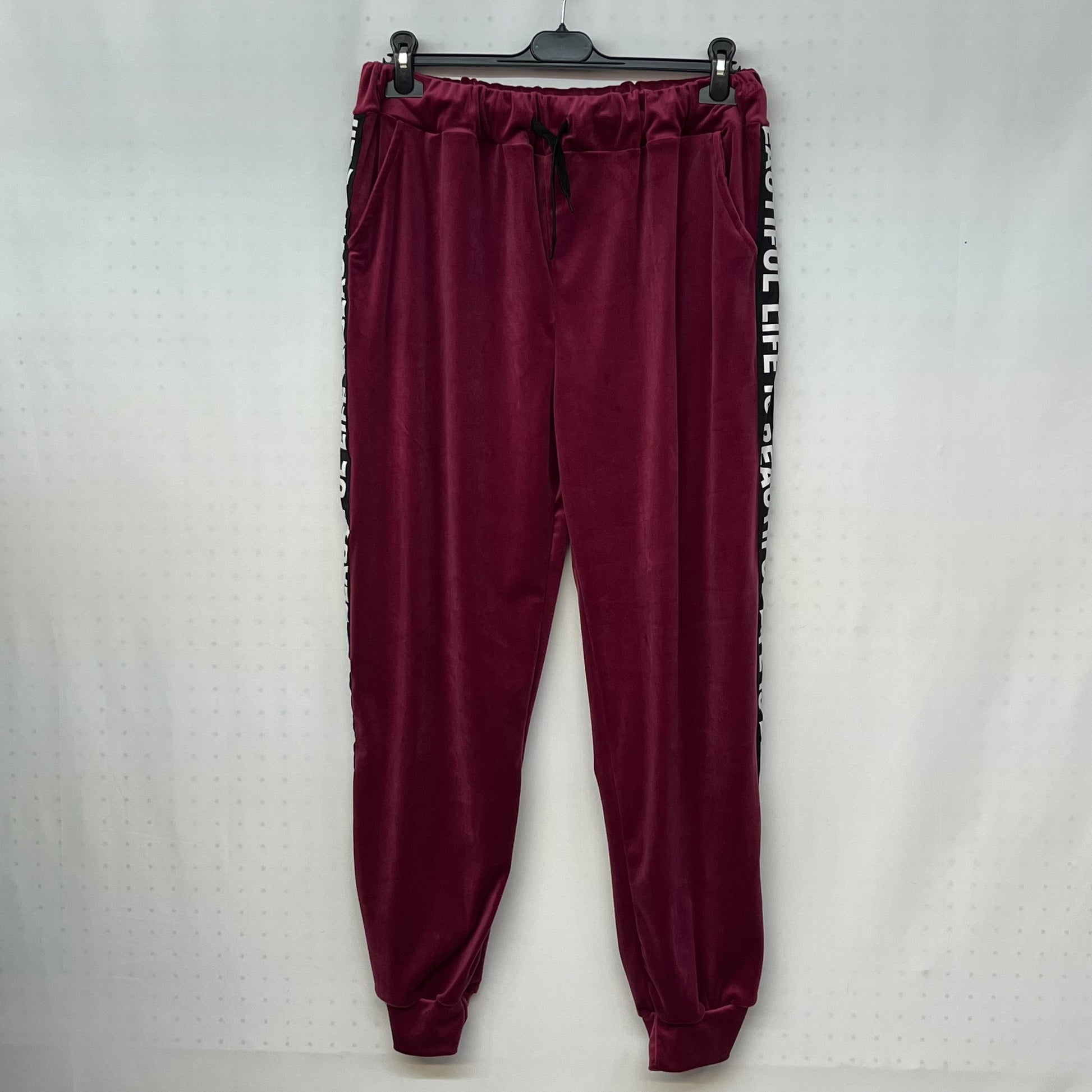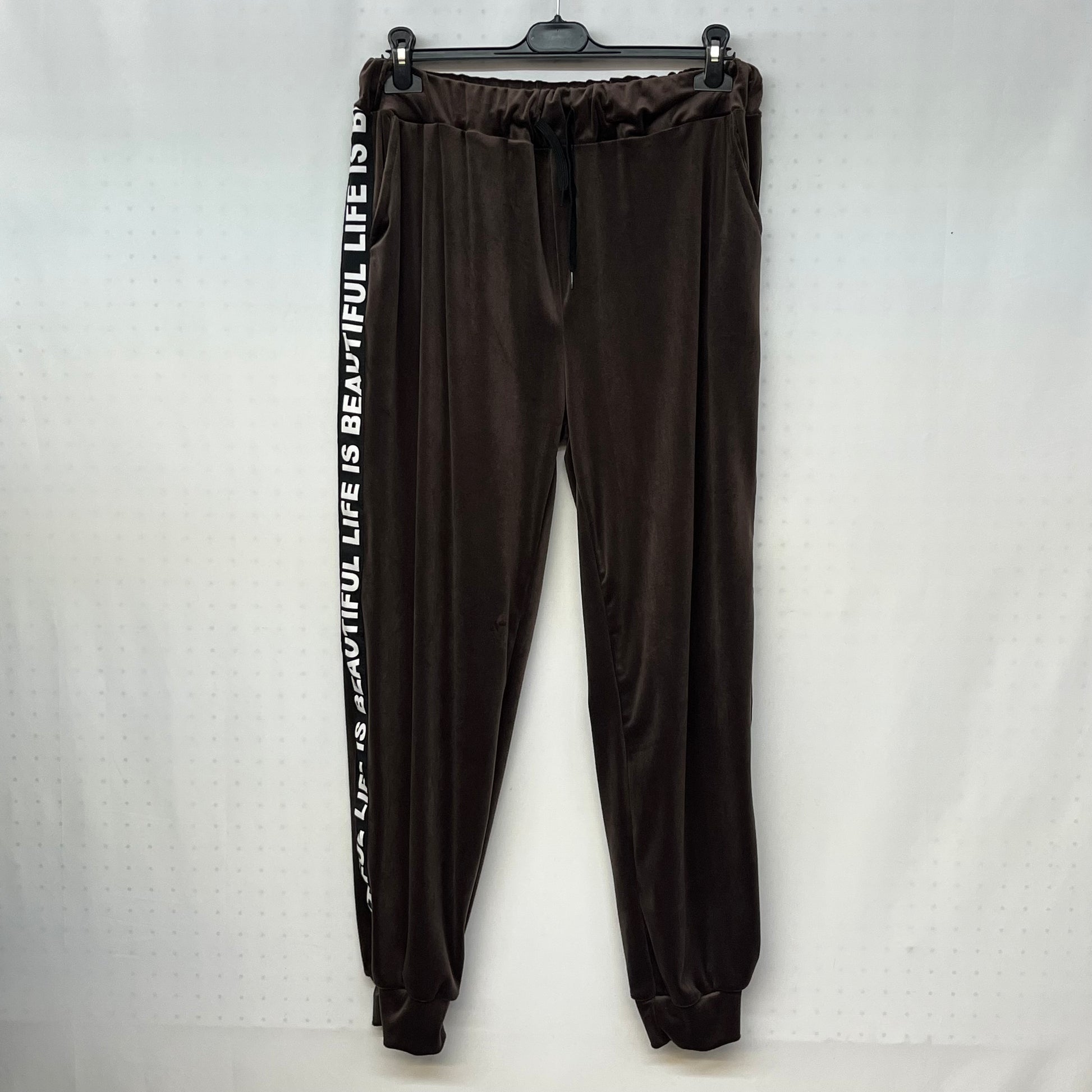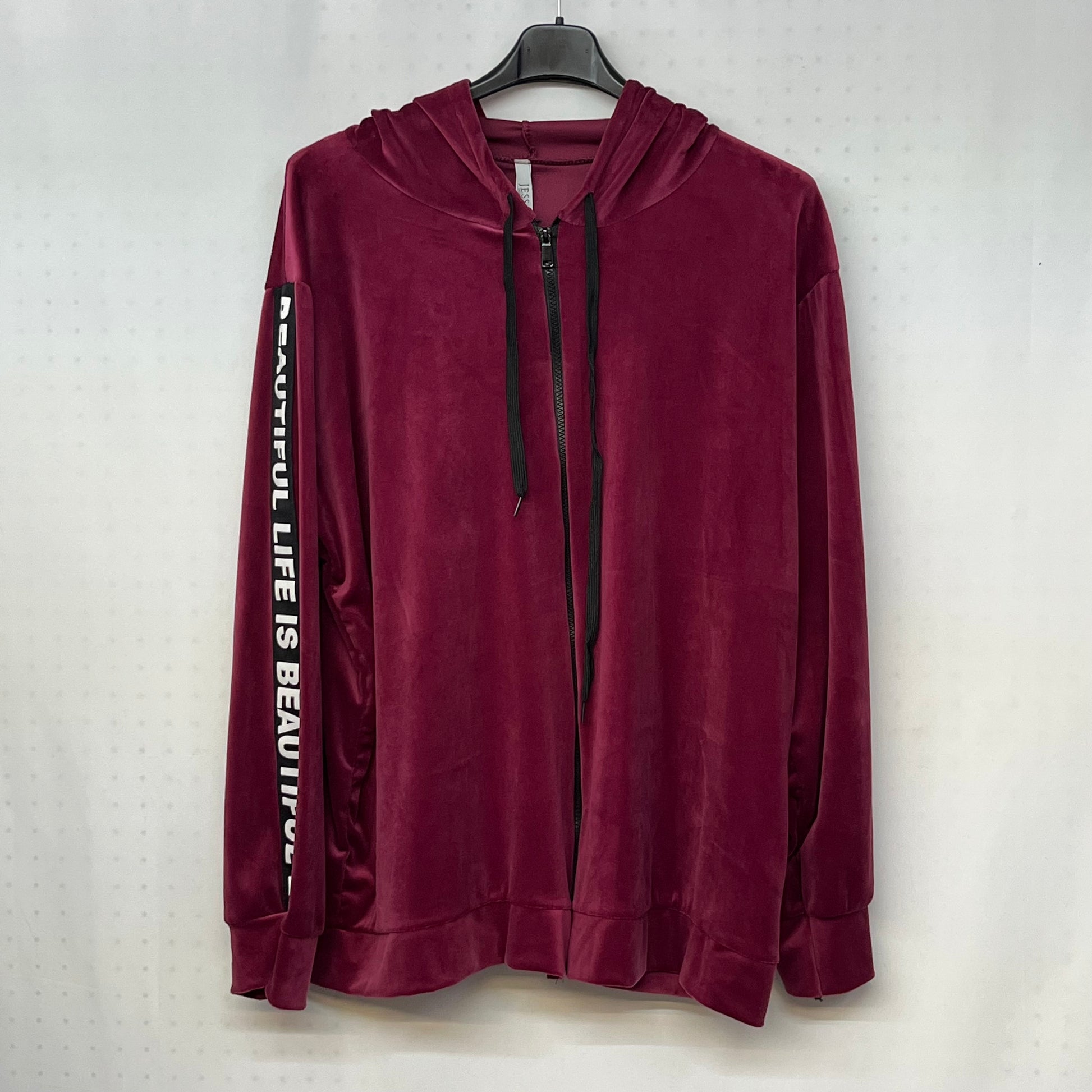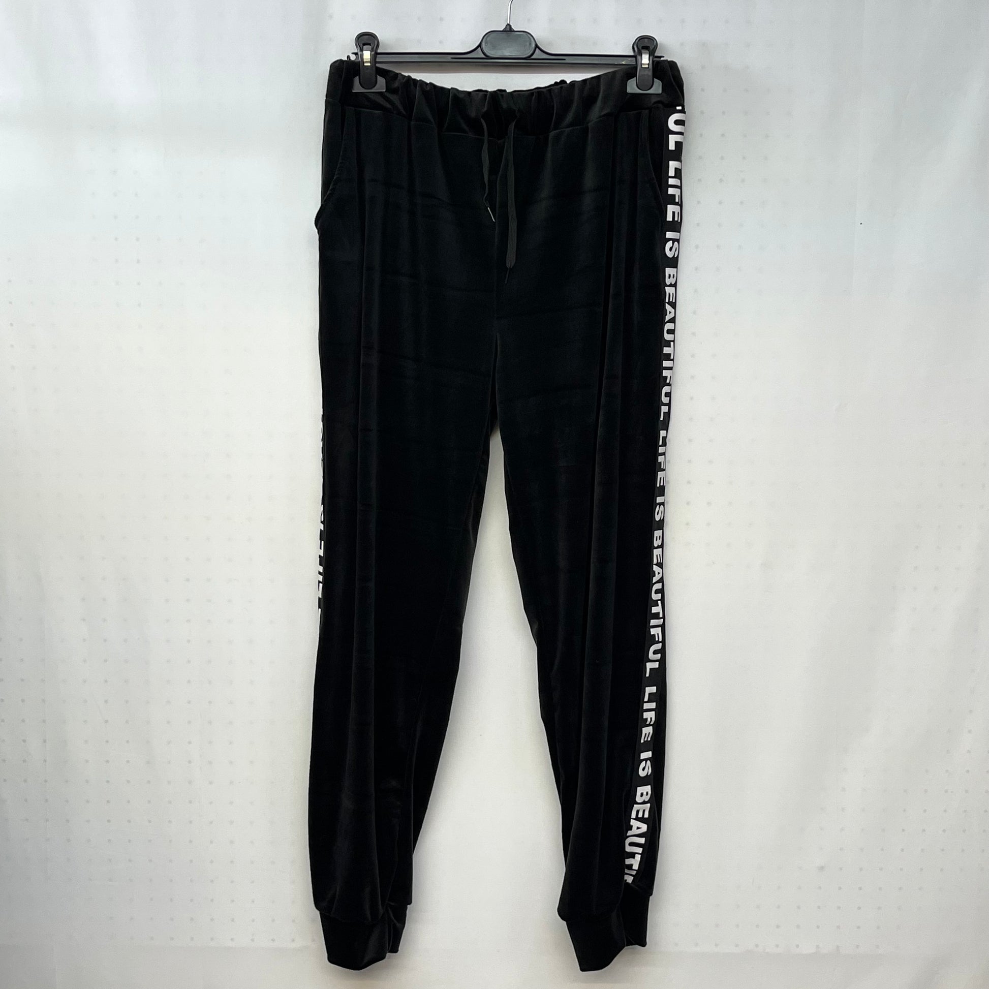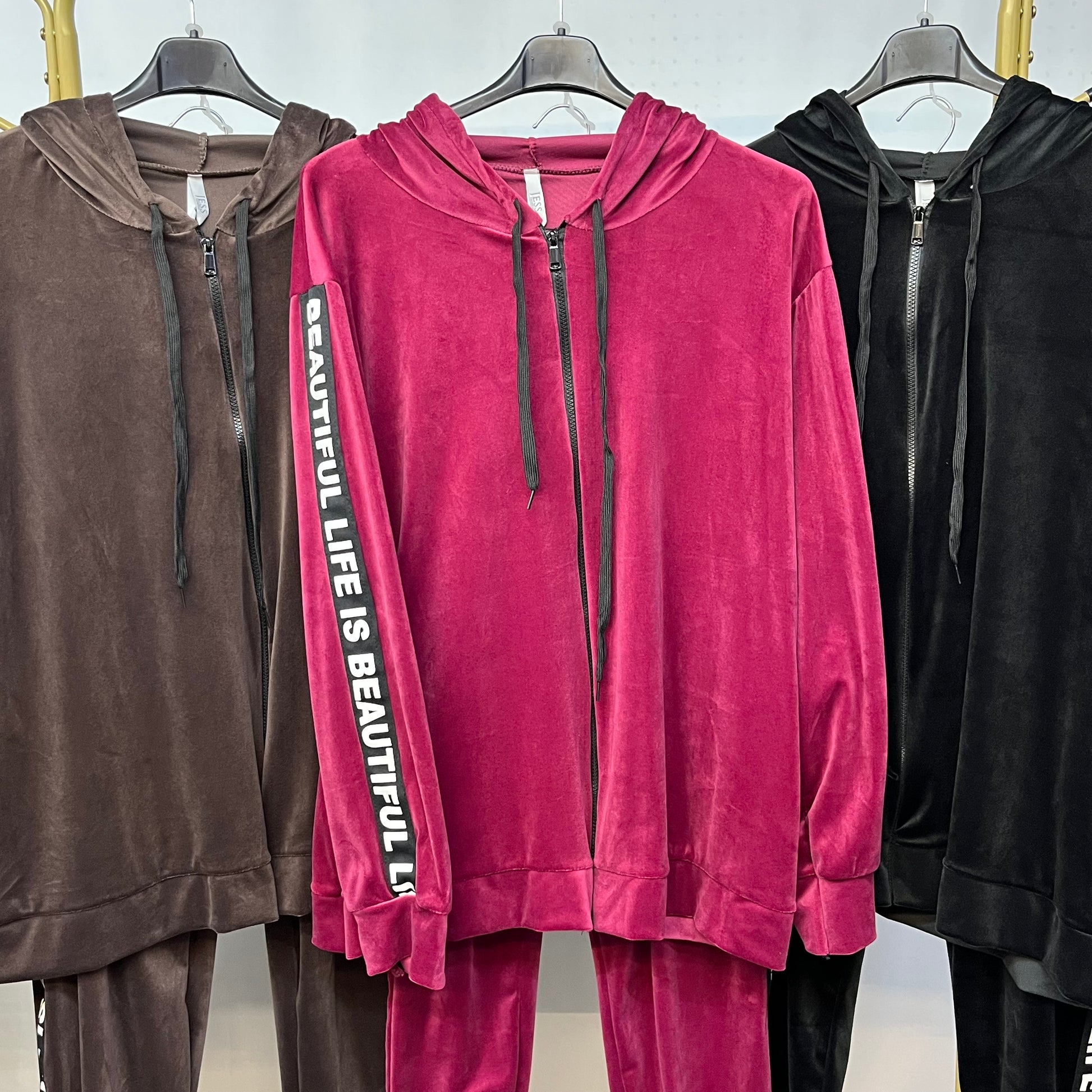 Questa tuta di ciniglia è perfetta per chi ama il comfort, con la sua zip e cappuccio sulla maglia e l'elasticità del pantalone. Aggiunge un tocco di stile con la scritta 'Beautiful Life' sulle maniche e sui lati del pantalone.