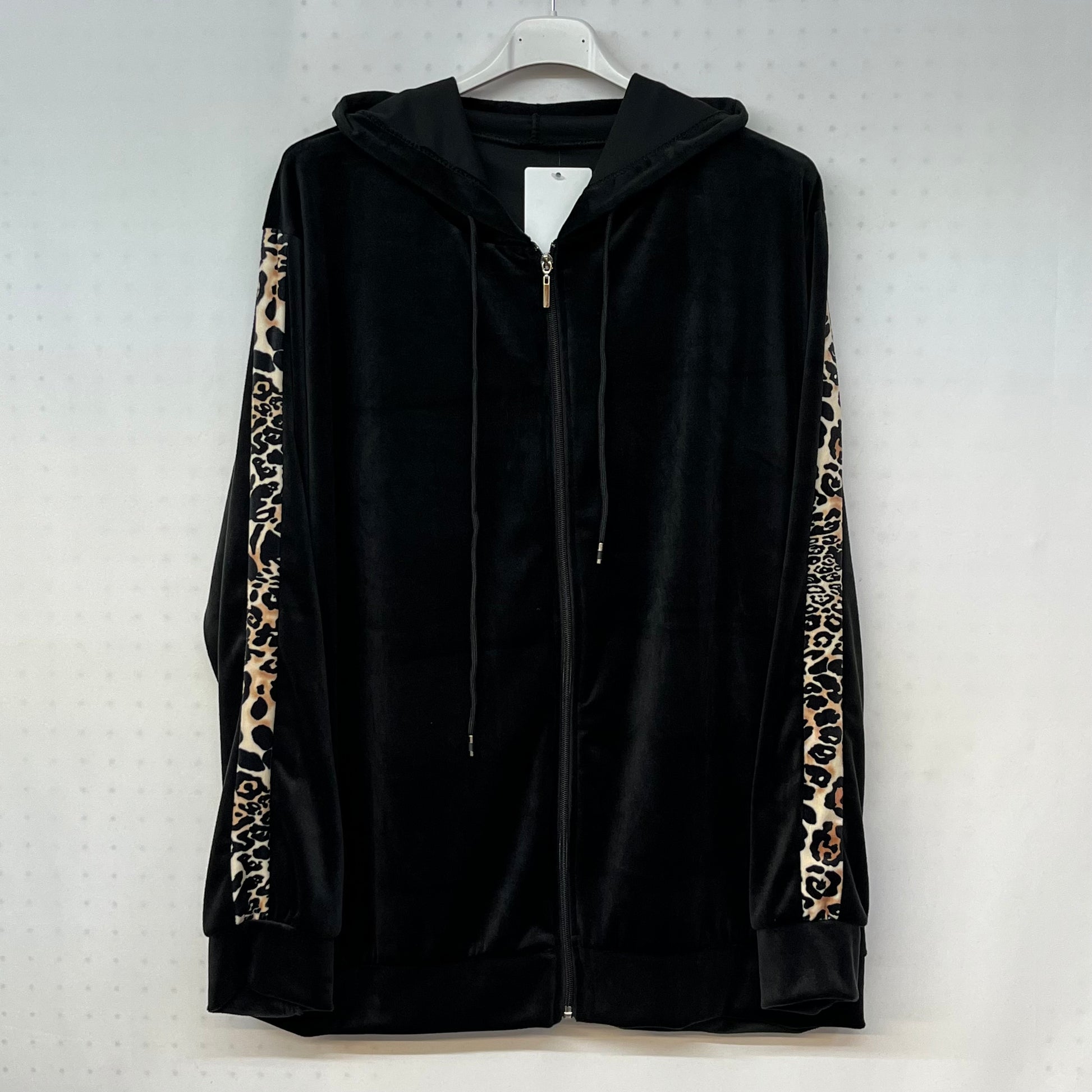La Tuta Black Cheetah è perfetta per chi ama il comfort e lo stile. Realizzata in ciniglia super morbida, la maglia con cappuccio e zip si abbina perfettamente al pantalone elasticizzato in vita con polsini alle caviglie. La banda maculata sulle maniche e sui lati del pantalone aggiunge un tocco di modernità e personalità al tuo look.