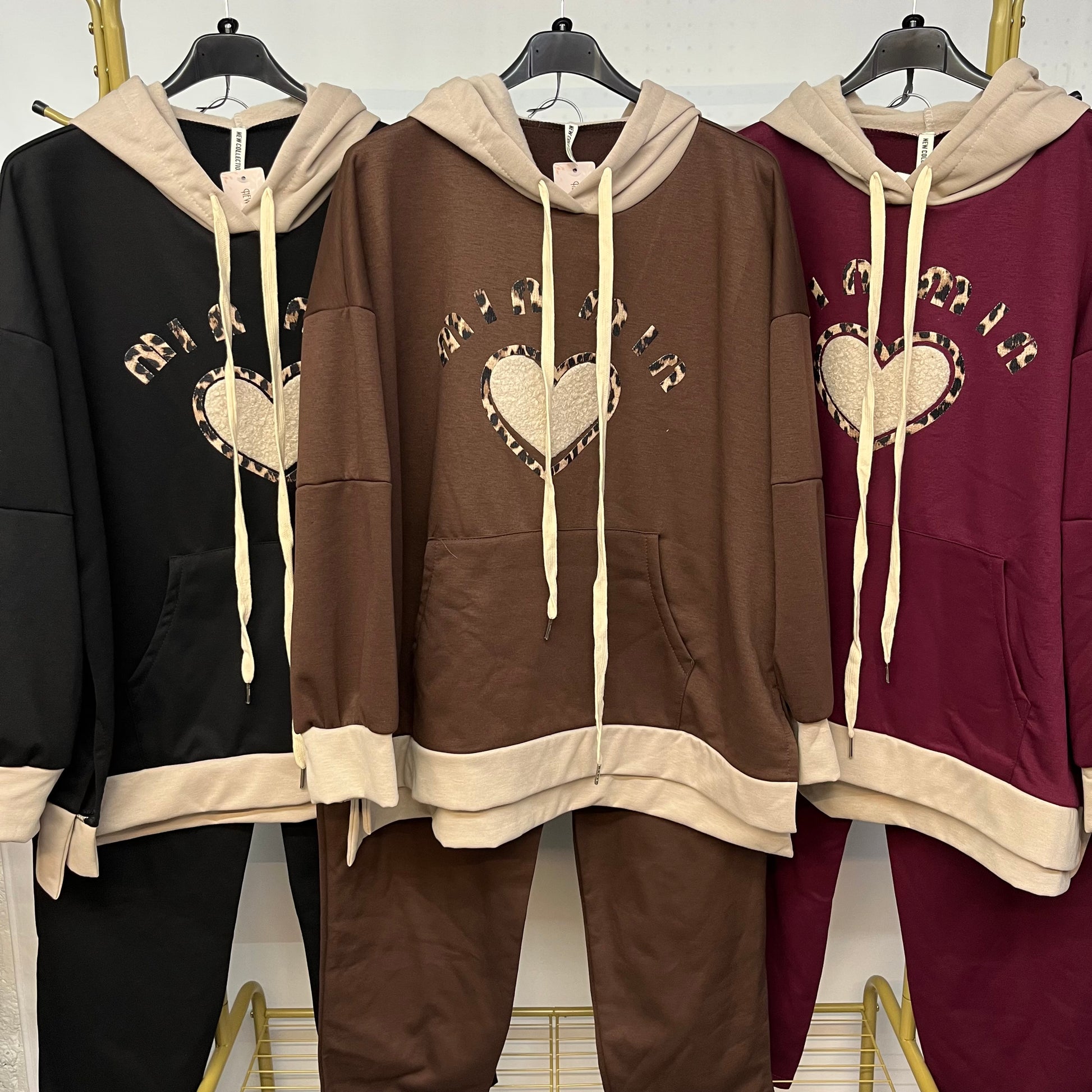 La Tuta Love Heart è perfetta per le giornate casual. La felpa morbida con cappuccio e tasche offre comfort e praticità, mentre il pantalone abbinato è comodo e alla moda. La stampa rialzata con cuore e maculato aggiunge un tocco di stile. Una scelta unica per chi ama il comfort senza rinunciare allo stile.