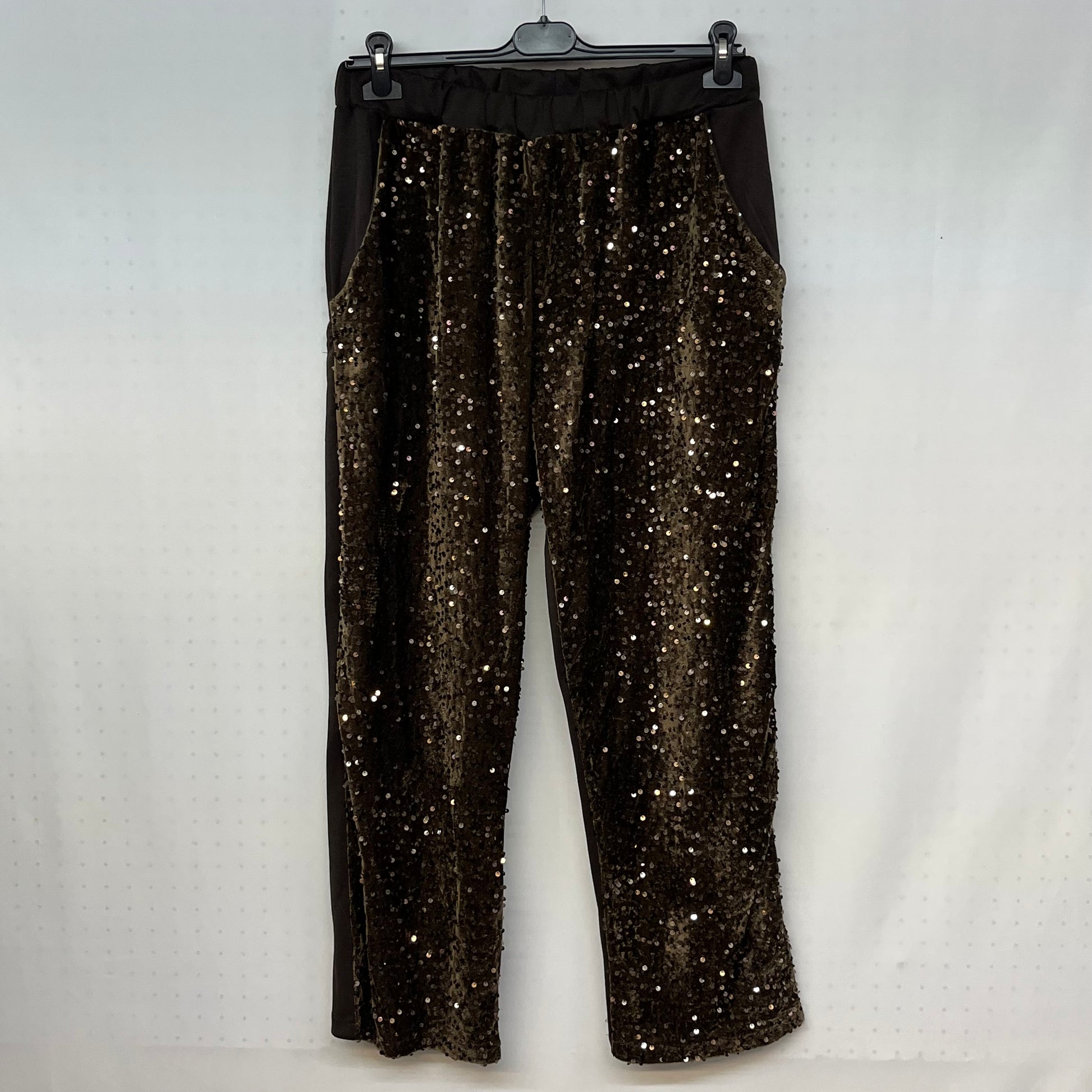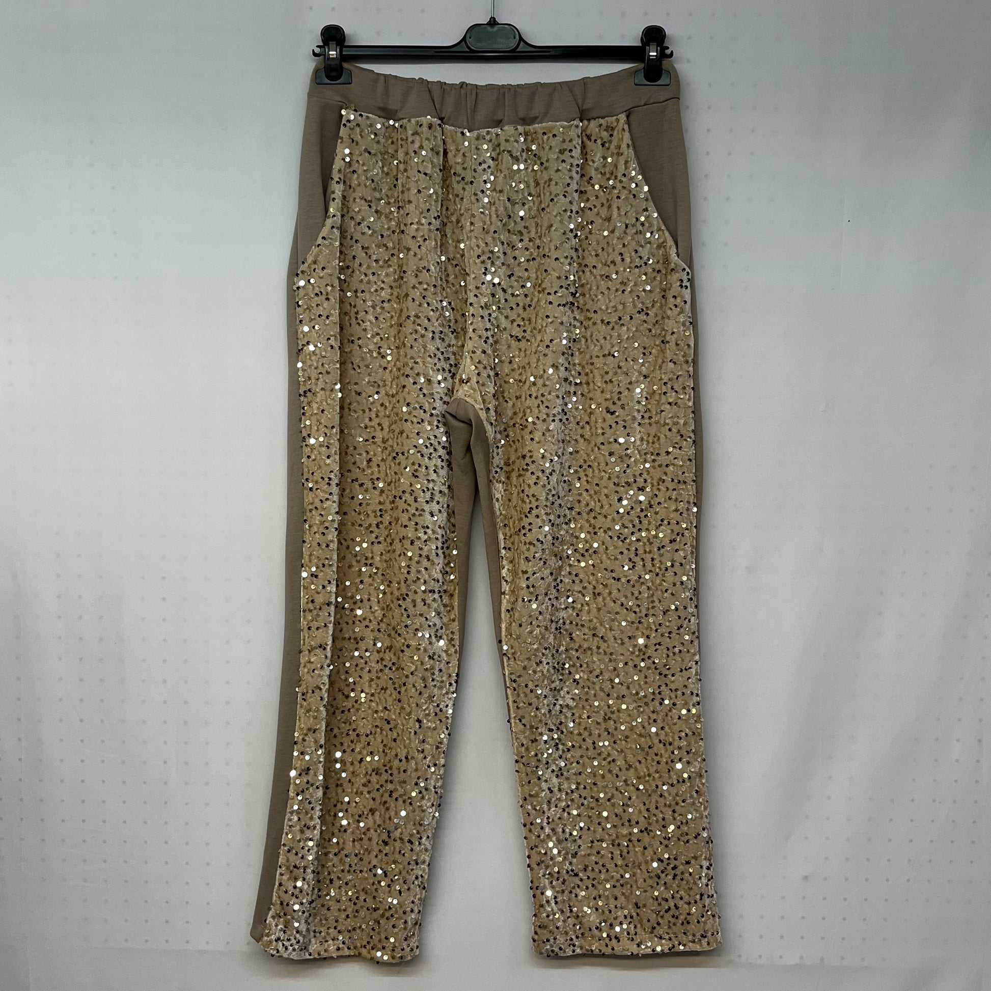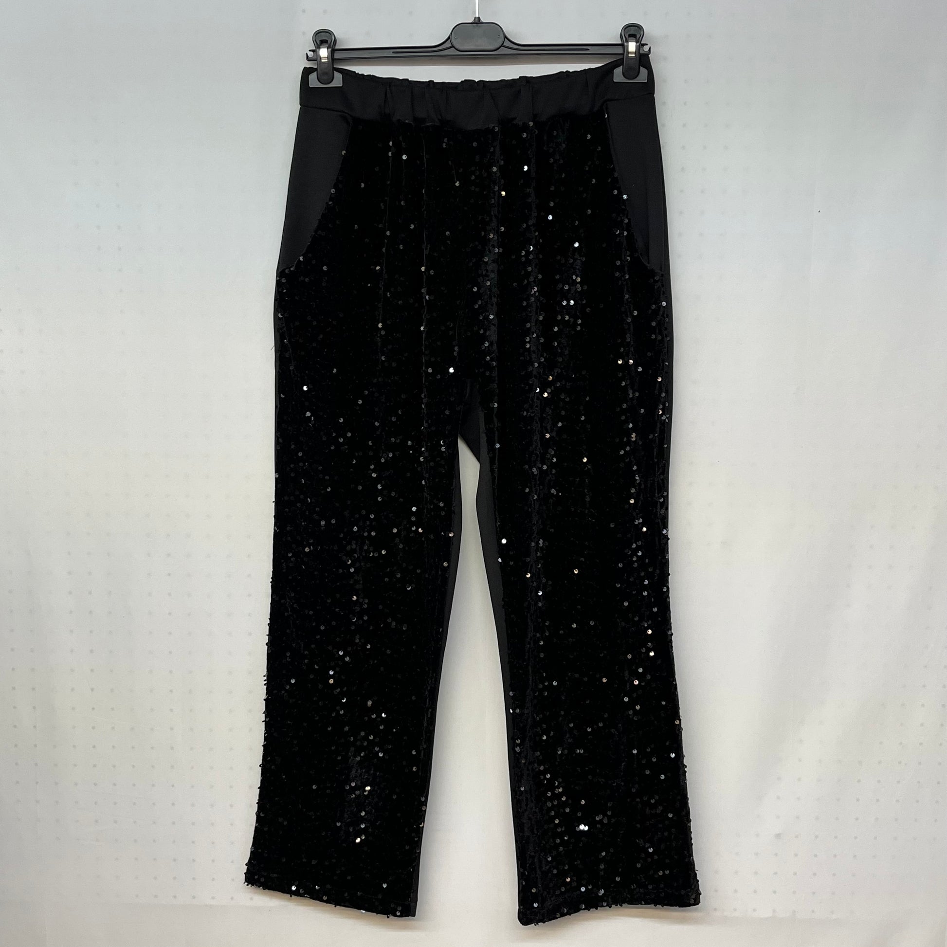 Esibisci il tuo stile con la Tuta Showstopper in viscosa. Sia la maglia che il pantalone sono impreziositi da paillettes brillanti su un fondo di ciniglia, per un look unico e glamour. Confortevole e versatile, questa tuta sarà la protagonista dei tuoi outfit.