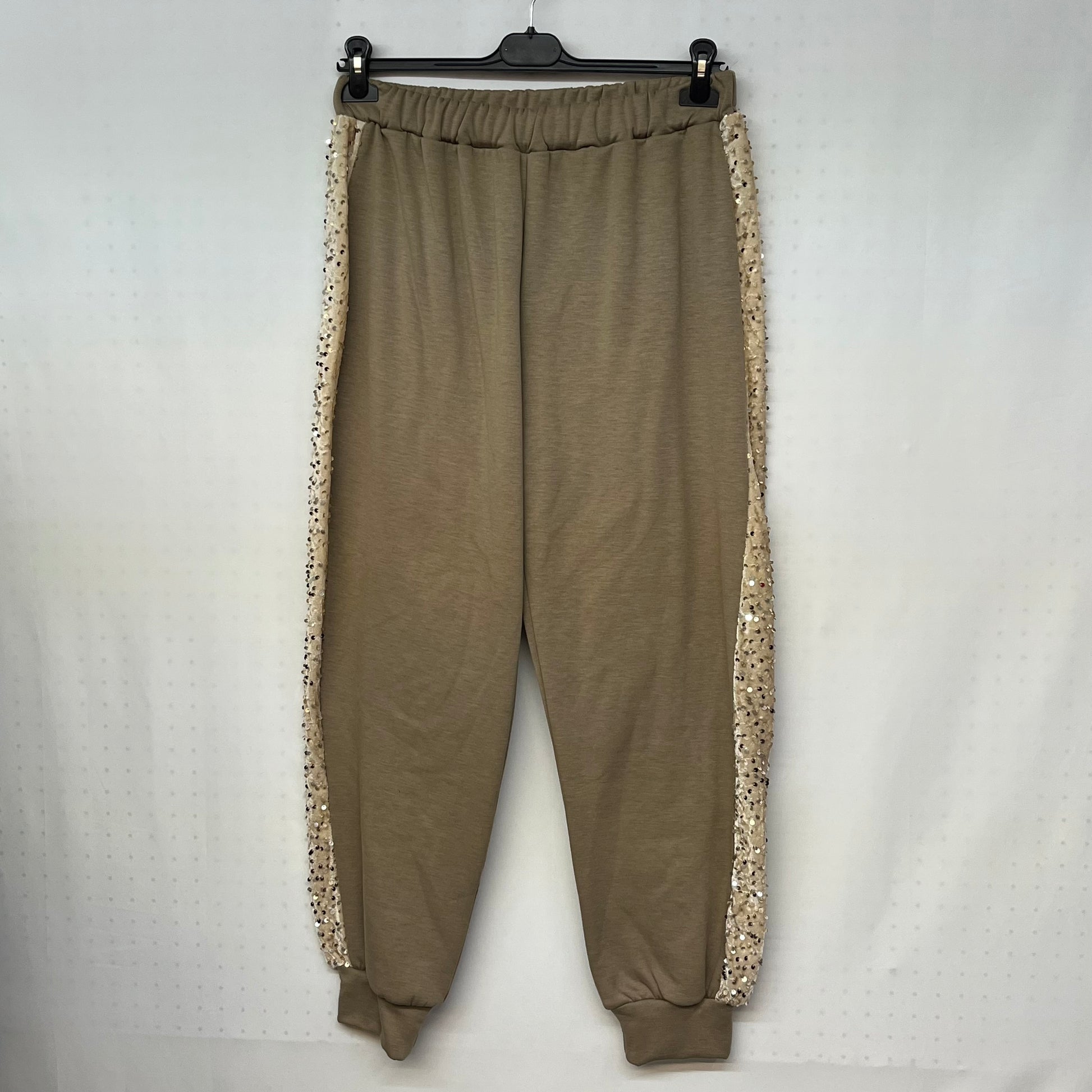 La Tuta Sporty Glam è elegante e comoda, perfetta per l'allenamento o il relax. La felpa e il pantalone sono abbinati e presentano una banda di paillettes sui lati, aggiungendo un tocco glam. La felpa ha un cappuccio regolabile tramite i laccetti, mentre il pantalone è elasticizzato in vita per una perfetta vestibilità.