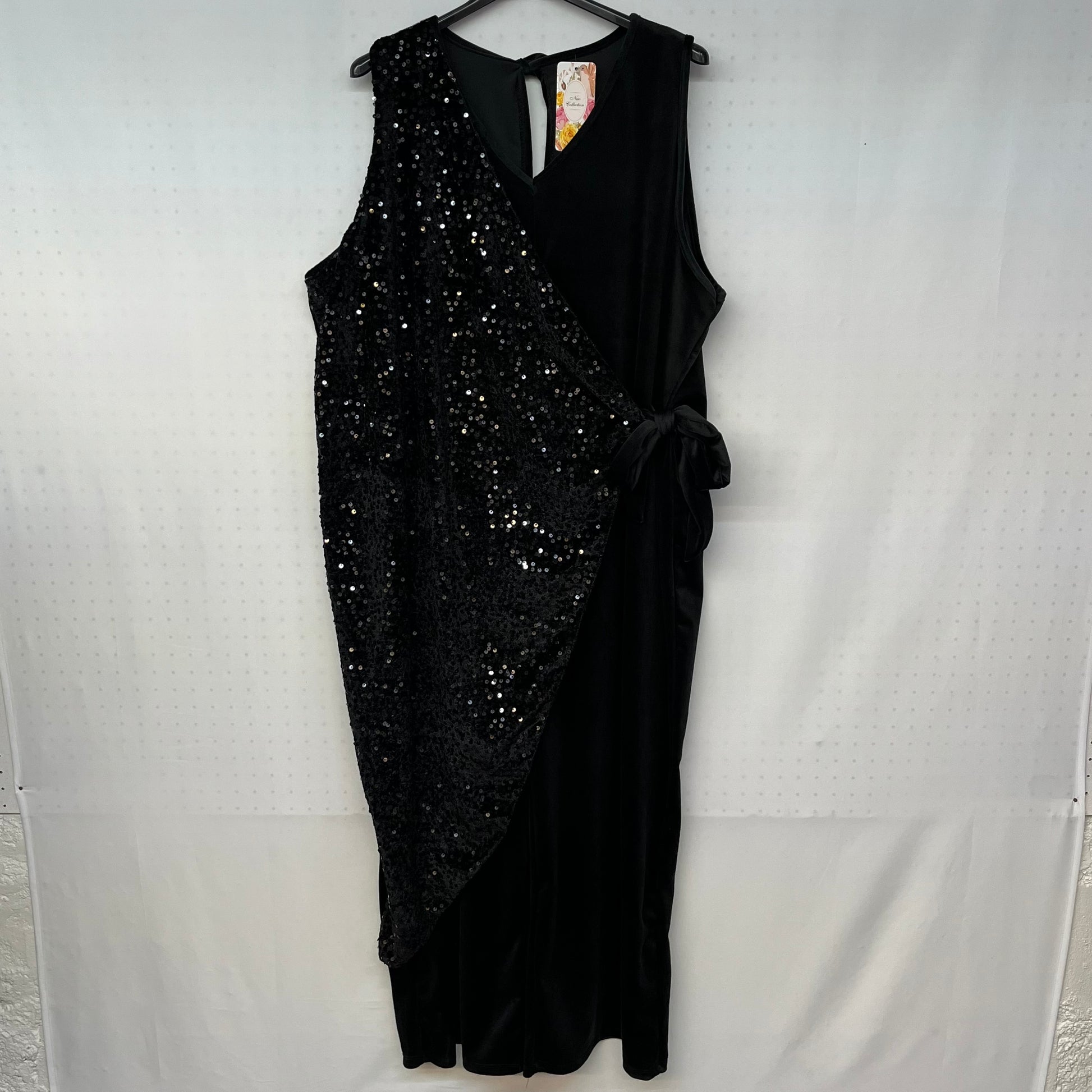 Lasciati conquistare dallo stile unico della nostra tuta intera senza maniche, che sembra un elegante vestito grazie alla sua apertura in paillettes. Il design sofisticato e la possibilità di legare la tuta sul fianco renderanno il tuo look elegante e raffinato in ogni occasione.