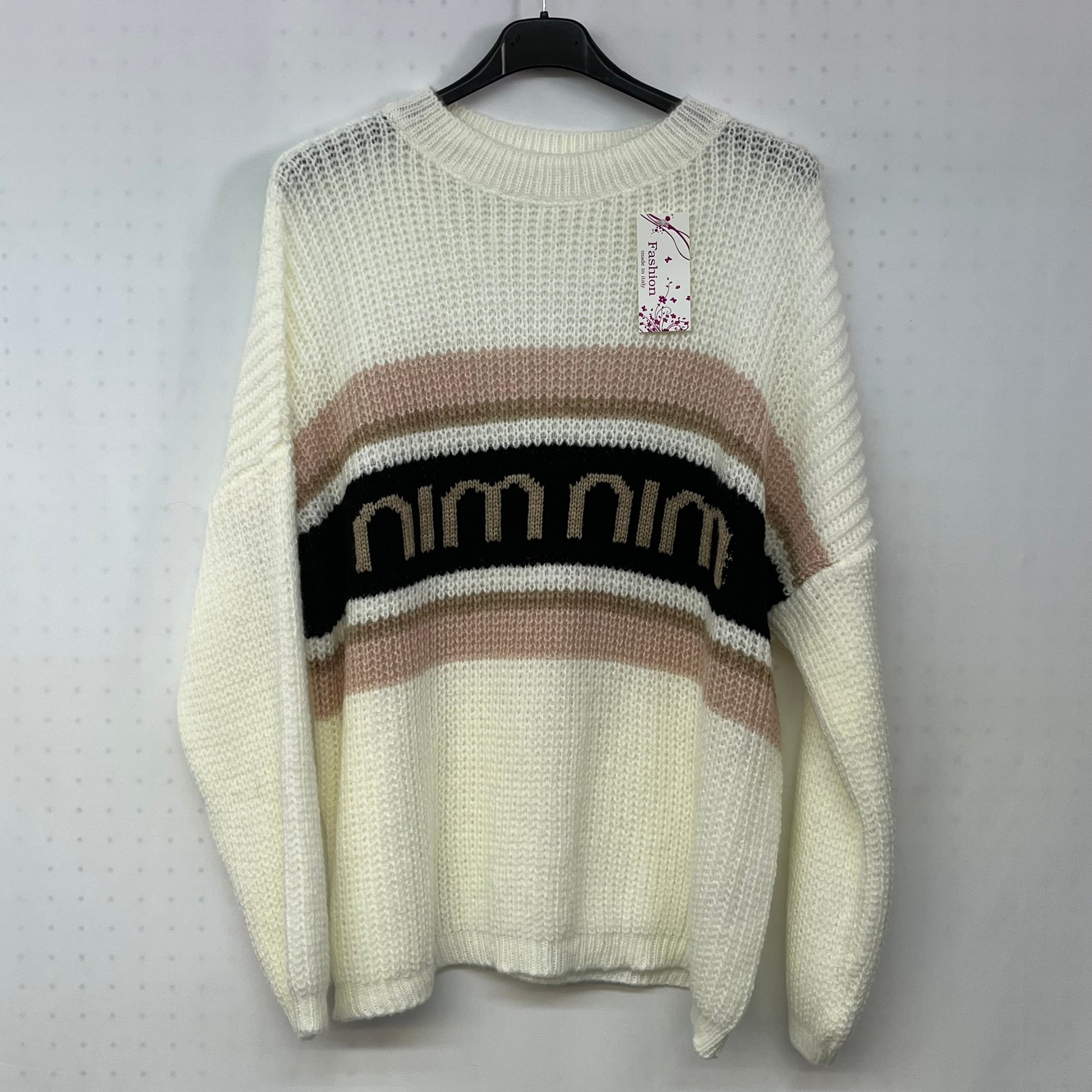 Maglioncino Fashion Week è realizzato in lanetta intrecciata con scollo rotondo. Il motivo particolare con vari colori abbinati al colore principale del maglioncino, rende questo capo unico e alla moda. Un design innovativo e versatile per un look sempre trendy.