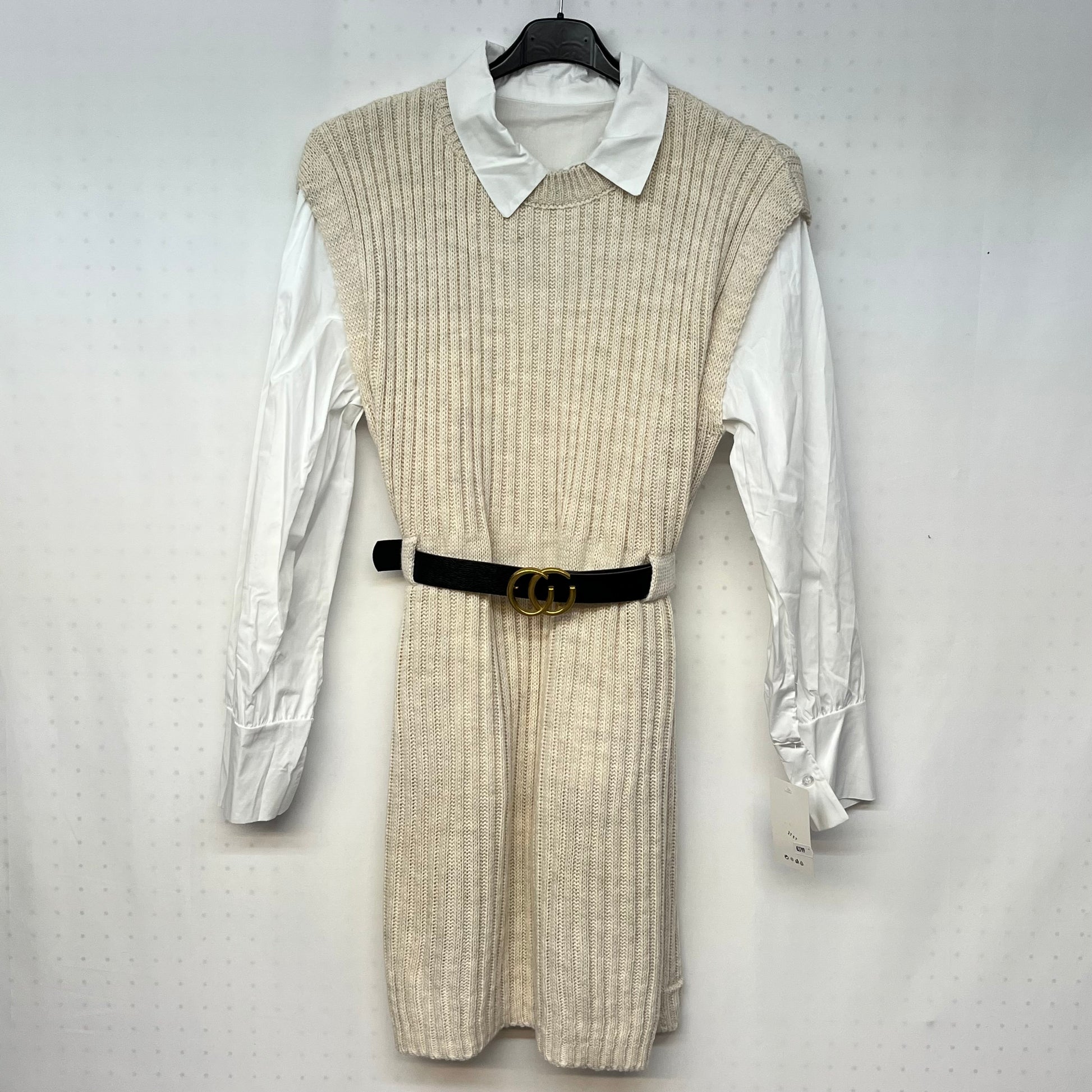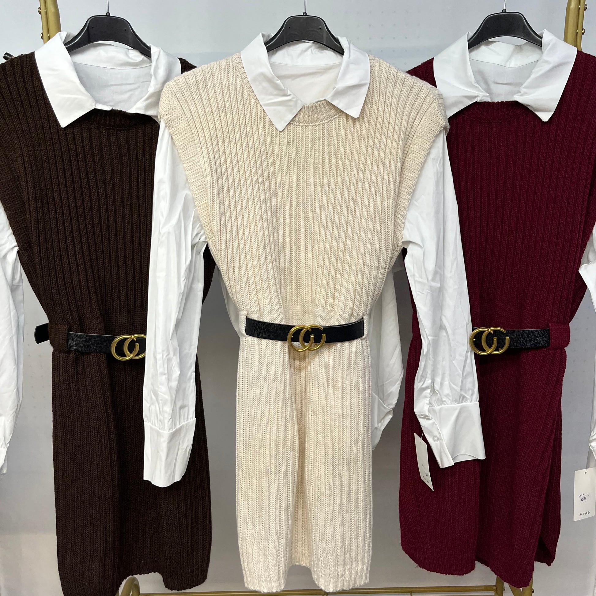 Questo Vestitino Preppy è realizzato in lanetta intrecciata e presenta una camicia aderente sotto. La cintura in vita aggiunge un tocco di eleganza. Perfetto per un look classico e chic.
