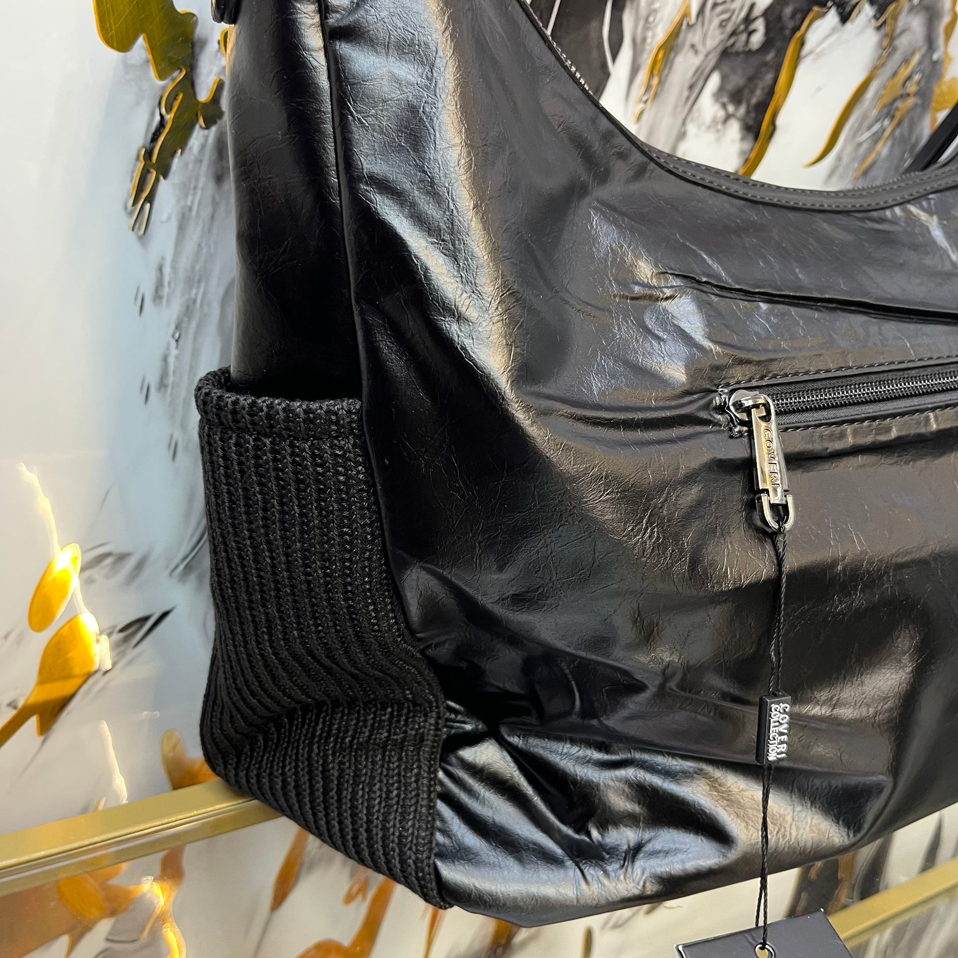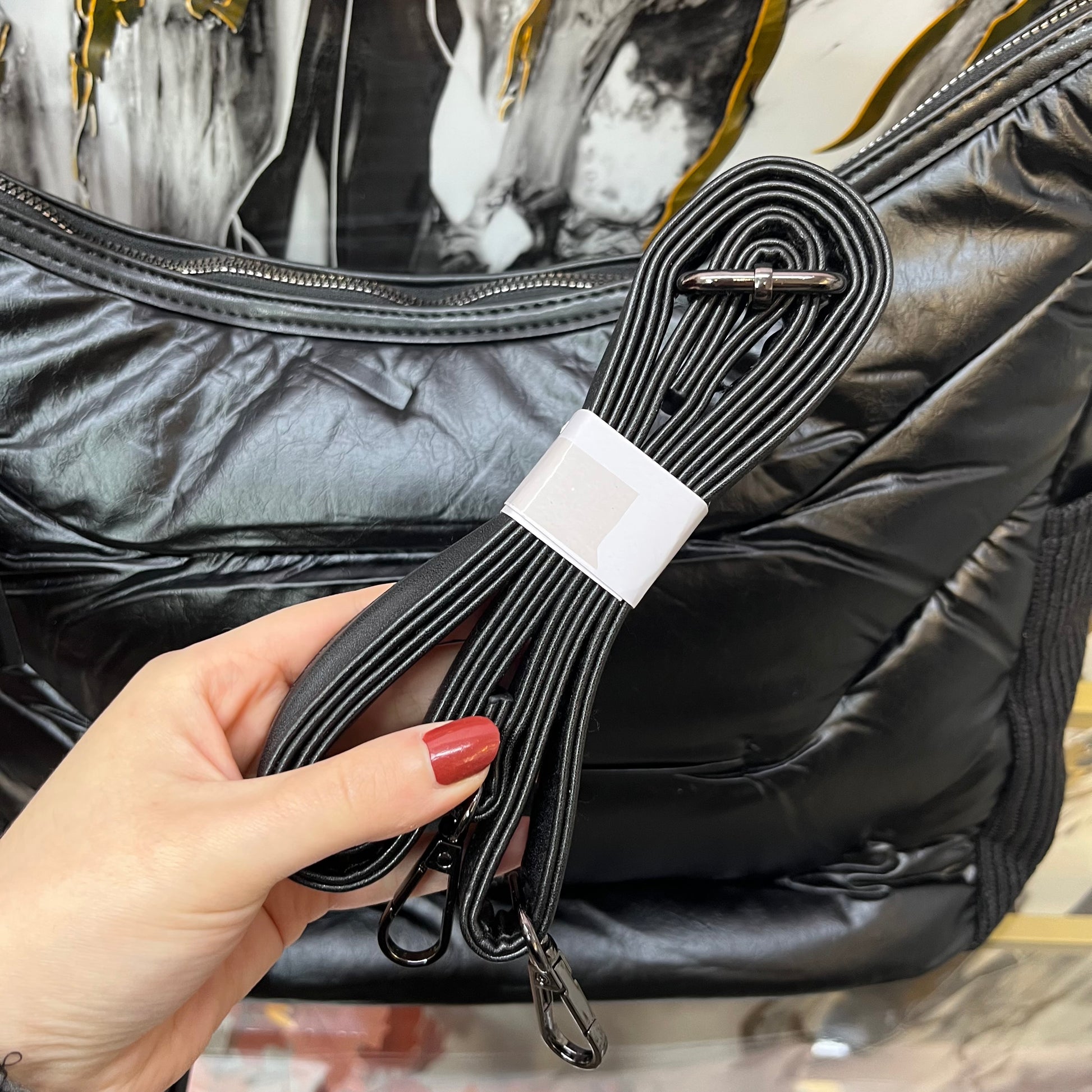 La Borsa Daphne è l'accessorio perfetto per chi desidera un look elegante e fashion. Realizzata in un sofisticato tessuto piumino lucido, offre una capienza generosa e pratiche tasche laterali in lanetta intrecciata. Completa di tracolla per una maggiore versatilità. Stile e funzionalità in un'unica borsa.