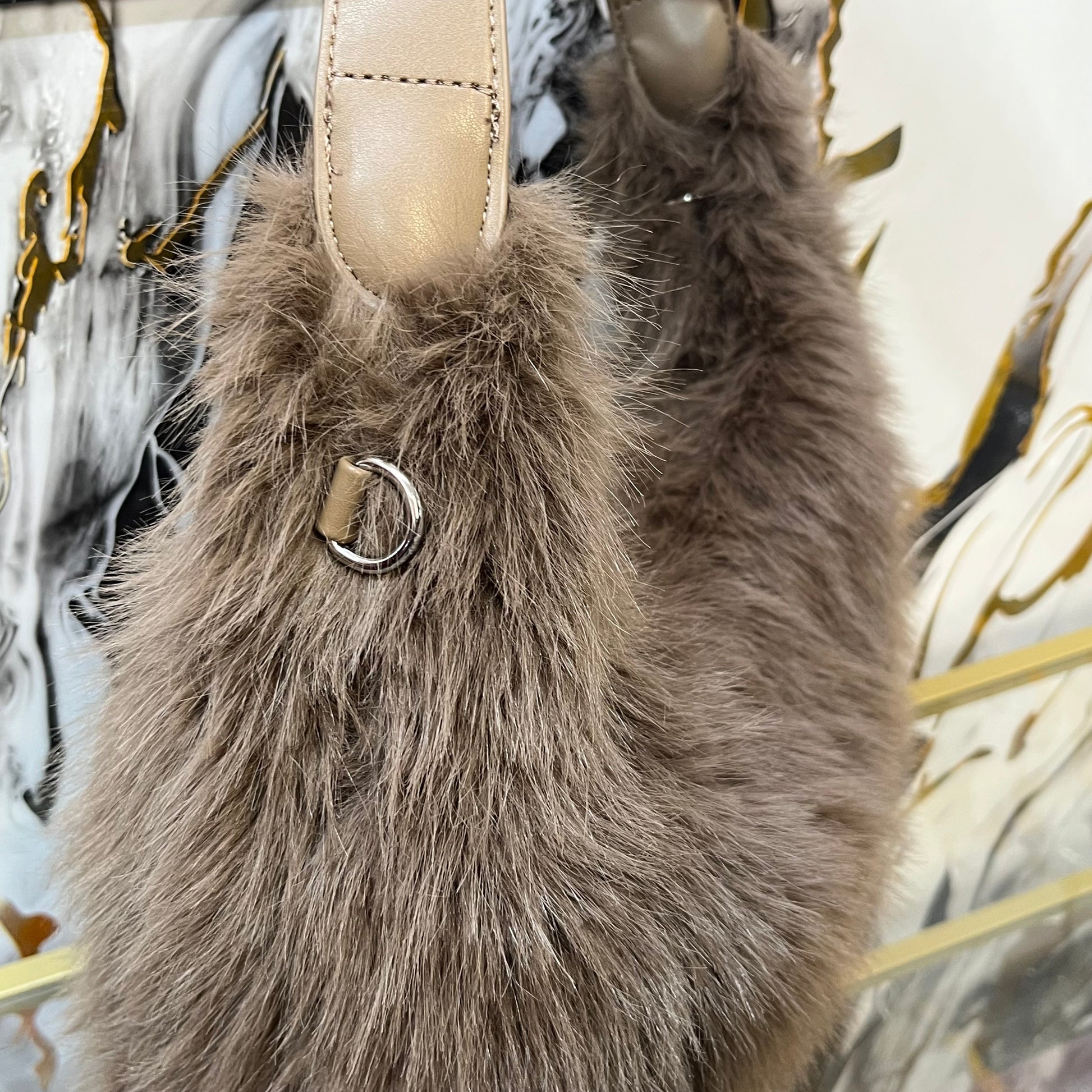 Porta con stile gli oggetti di tutti i giorni con la Borsa Hazel. Realizzata in tessuto peloso lungo e manico in eco pelle, è capiente e super trendy. Aggiungi anche la tracolla per una maggiore comodità.