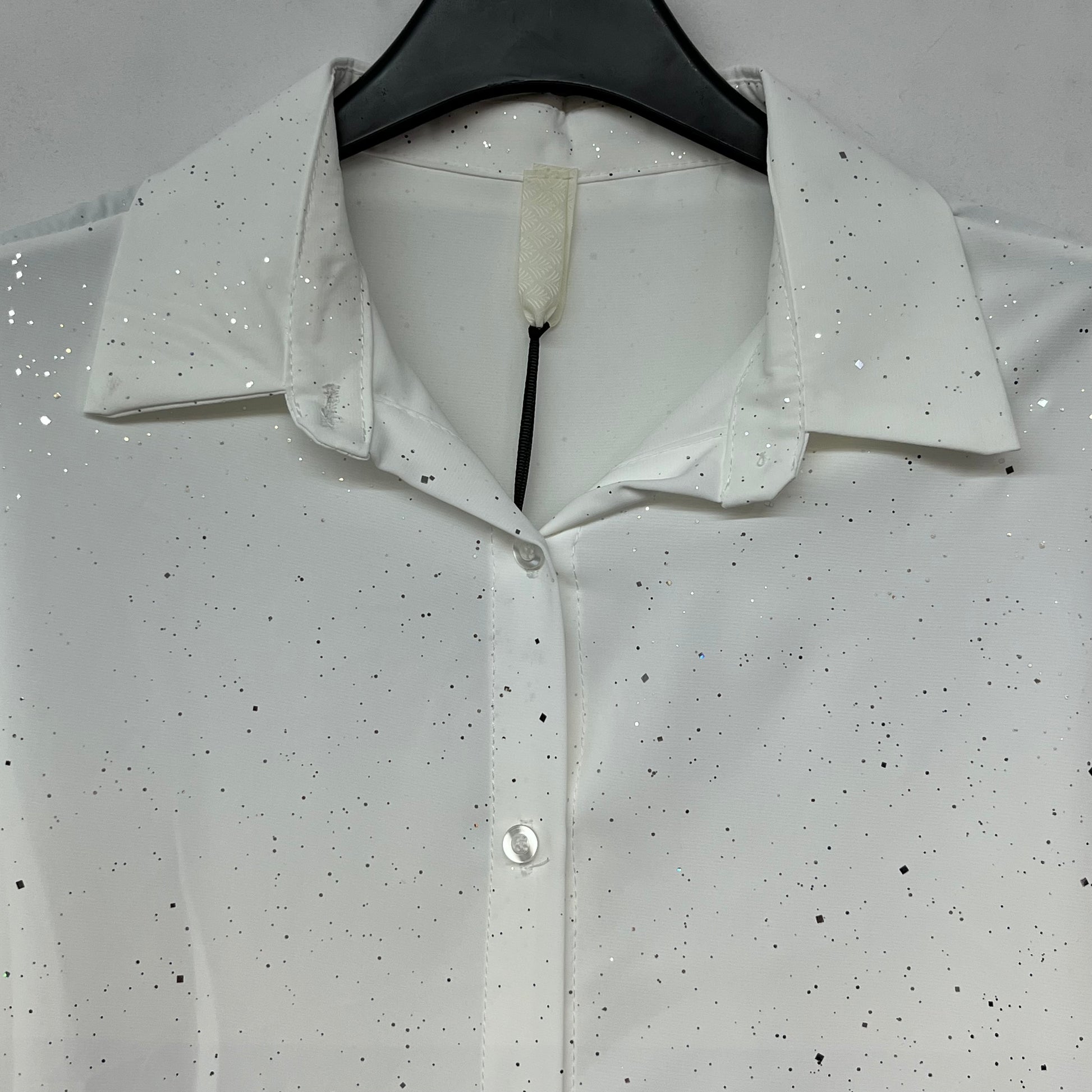 Questa Camicia Twinkle è un'aggiunta unica al tuo guardaroba. La camicia classica è impreziosita da un bellissimo effetto glitter che la rende perfetta per occasioni speciali o per dare un tocco di luce al tuo outfit quotidiano. Realizzata con cura e attenzione ai dettagli, sarà un elemento di stile che non passa inosservato.
