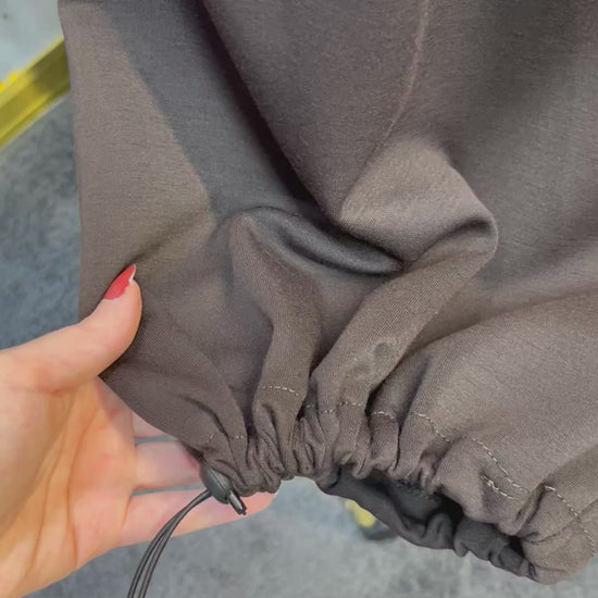 Pantalone di tuta cargo elasticizzato in vita con taschoni e cordicella regolabile alle caviglie. Comodo e pratico per ogni attività, si adatta perfettamente alla tua silhouette.
