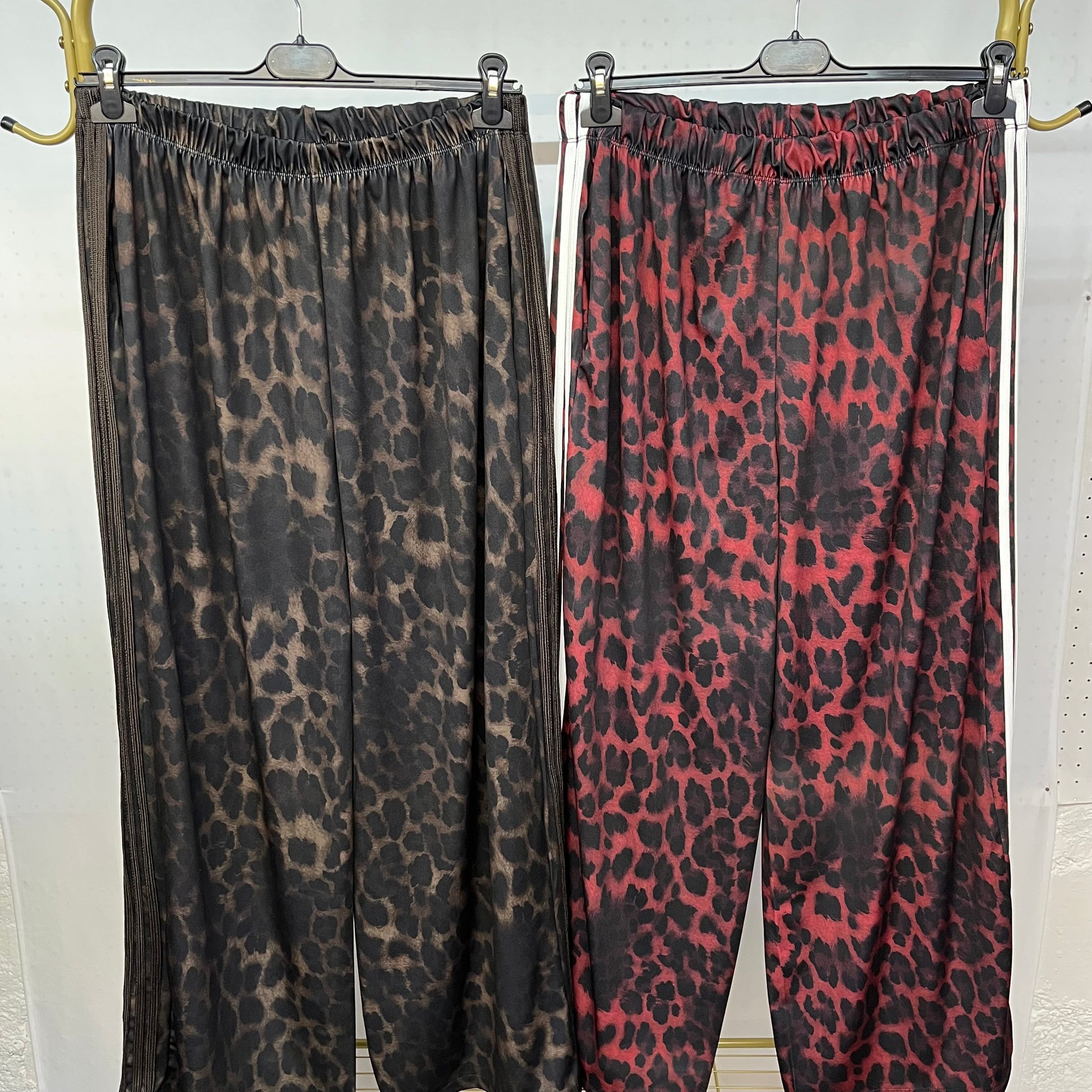 Con il nostro Pantalone Leopard Stripe, potrai unire lo stile di una tuta alla leggerezza di un tessuto elasticizzato. La stampa leopardata e le strisce laterali aggiungono un tocco trendy, mentre la cintura elastica garantisce un comfort ottimale. Perfetto per uno stile casual ma di classe.